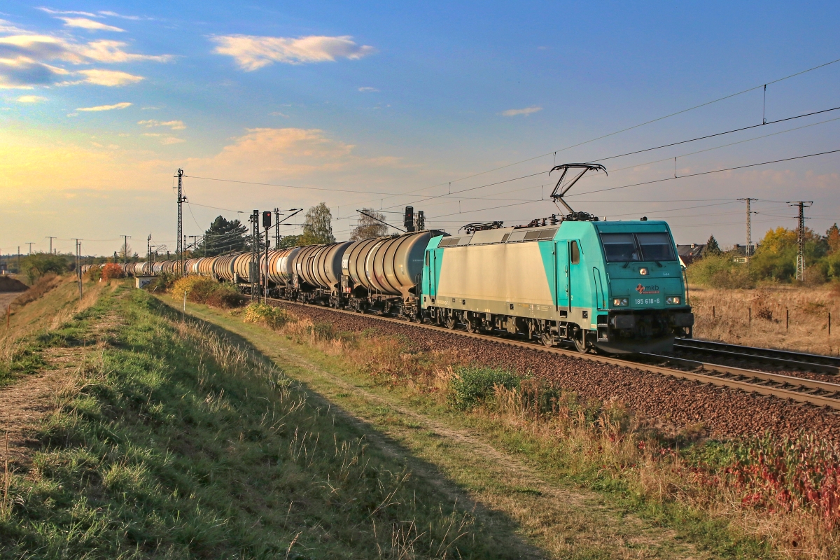 Dto. 185 618-6 am 16.10.2018 bei untergehender Sonne. Hier passierte
