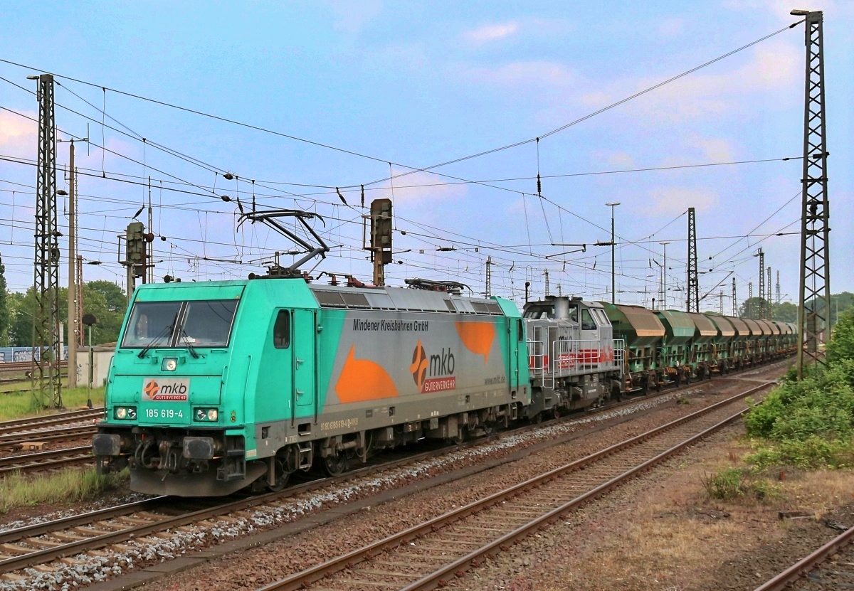 185 619-4 (NVR: 91 80 6185 619-4 D-MKB) und 271 015-0 passierten hier am 27.05.2016 mit einen ITL Fcs