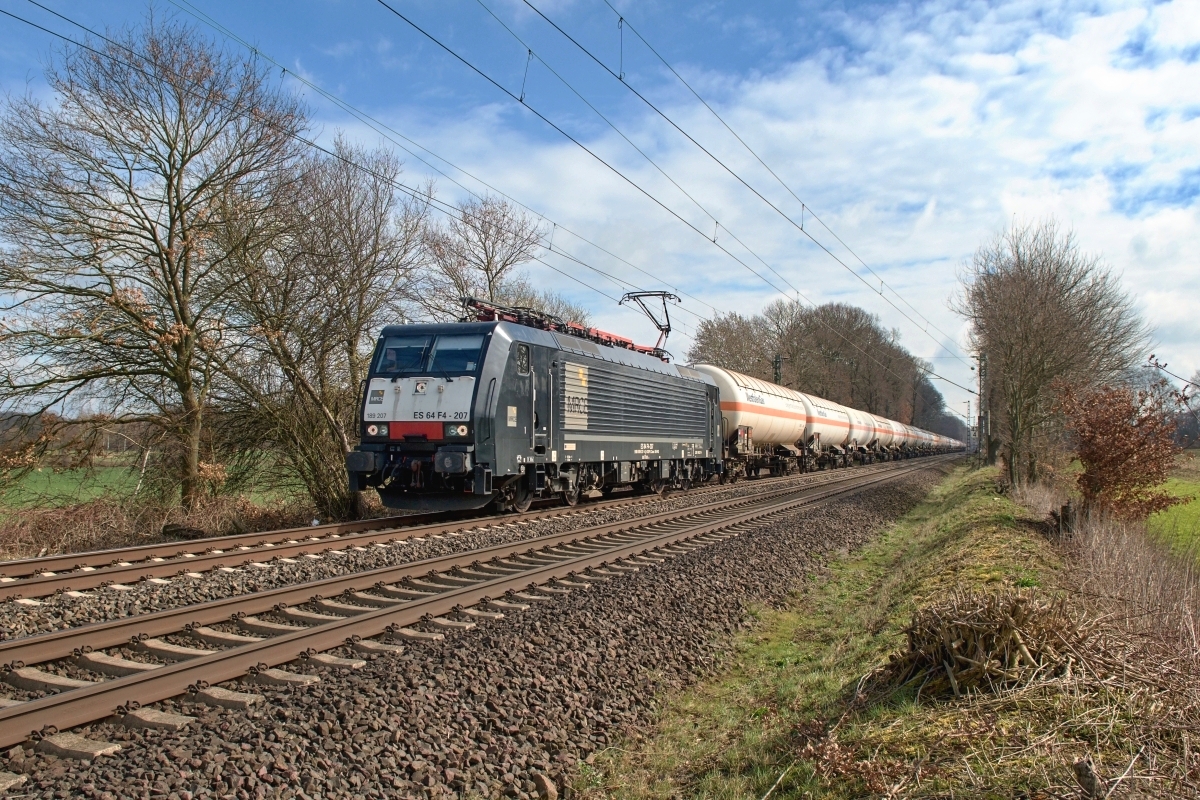 19.03.2021 bei Linsburg (HLBU) Borstel mit einem Kesselwagenzug Rtg.