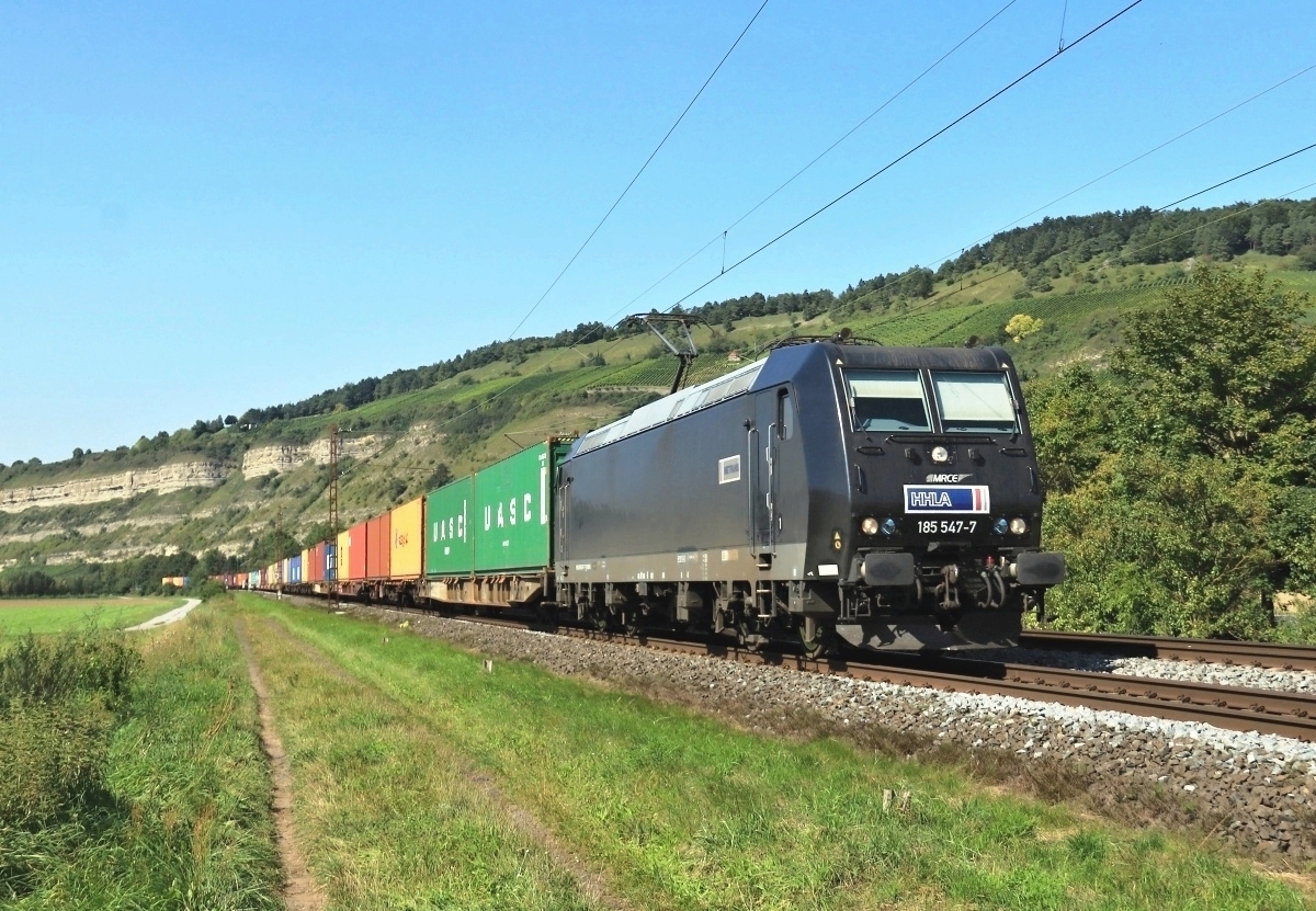 Containerzug bei Thüngersheim (NTHM) Rtg. Süden unterwegs...