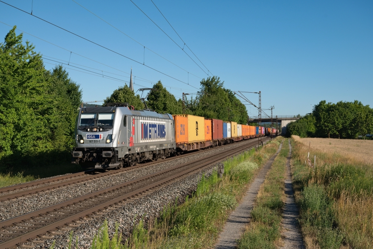 Dto. 187 511-1 am 02.07.2022 im Abendlicht bei Thüngersheim (NTHM) mit
