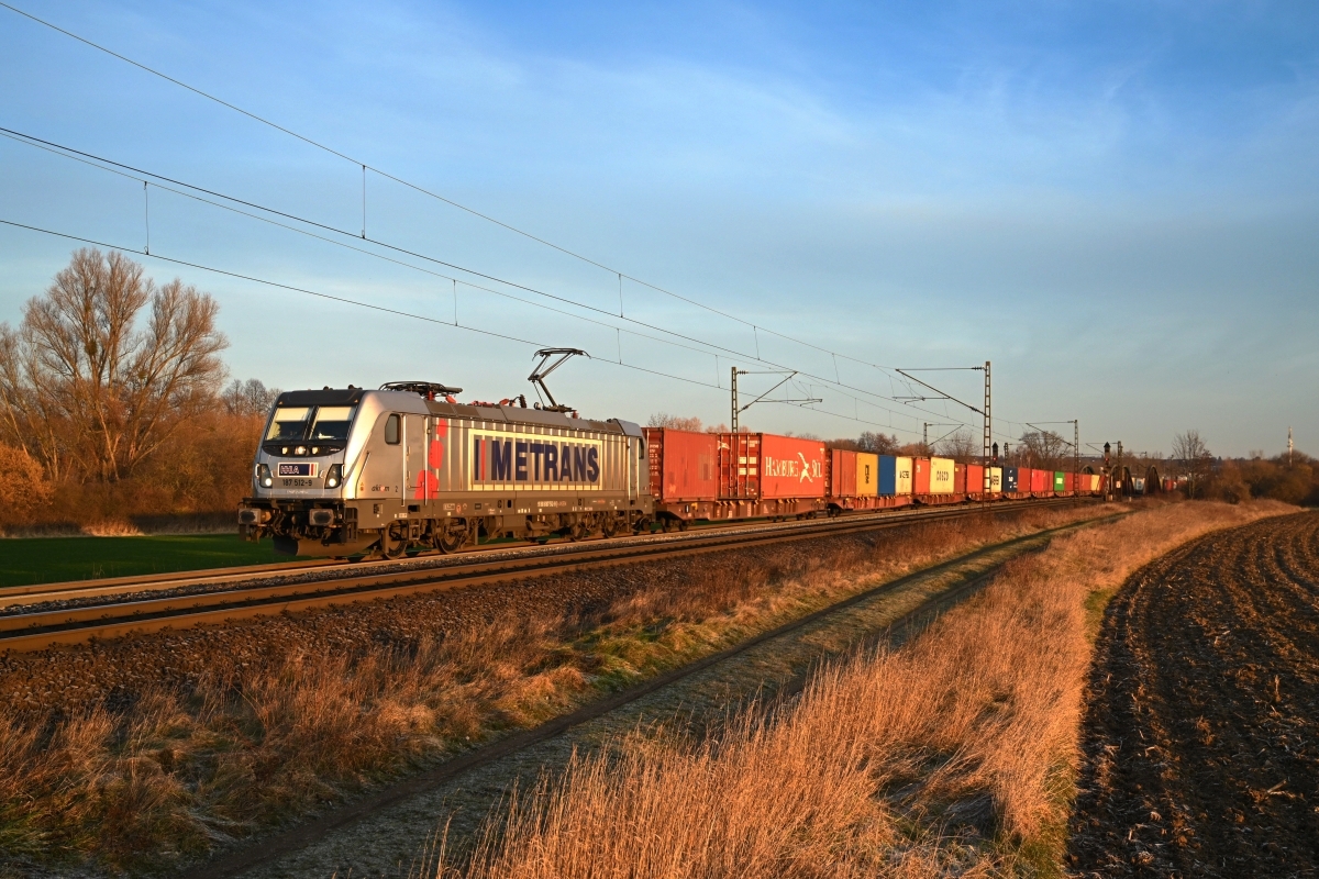 Abendlicht bei Thüngersheim (NTHM) mit einem Conatinerzug Rtg.