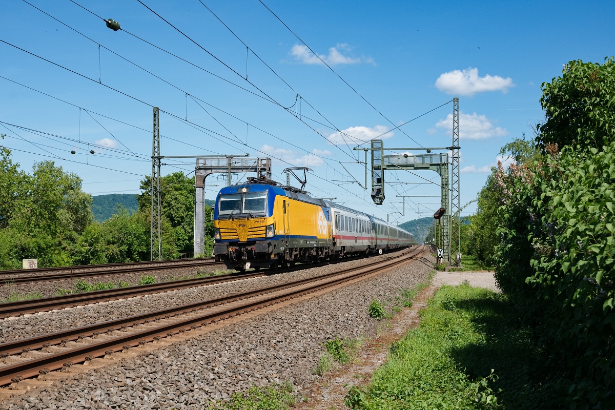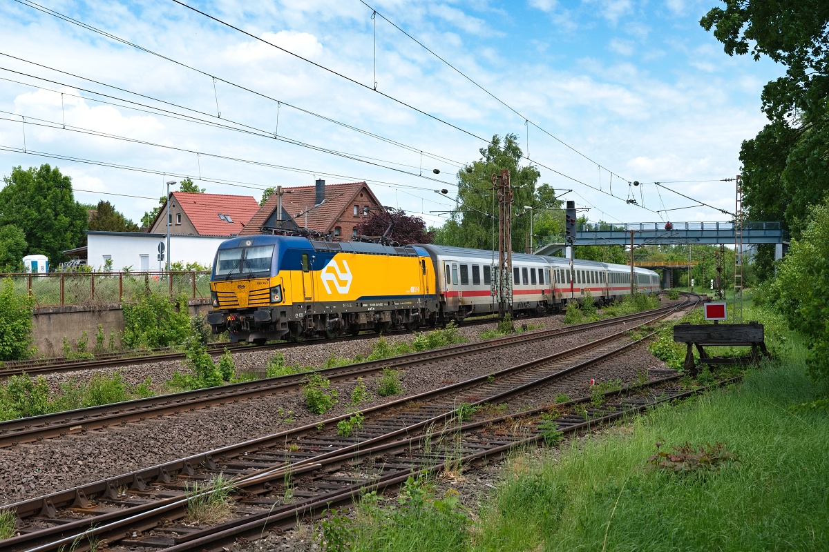 Dto. 193 499-1 am 08.05.2024 bei Lindhorst (HLH) Vornhagen mit dem IC 141