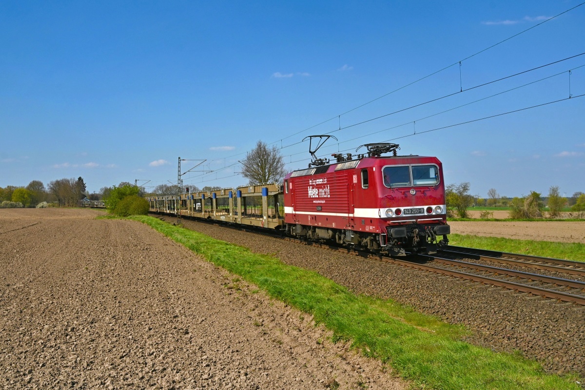 hier am 06.04.2023 bei Poggenhagen (HPOG) Liethe mit dem Leer-BLG Autozug