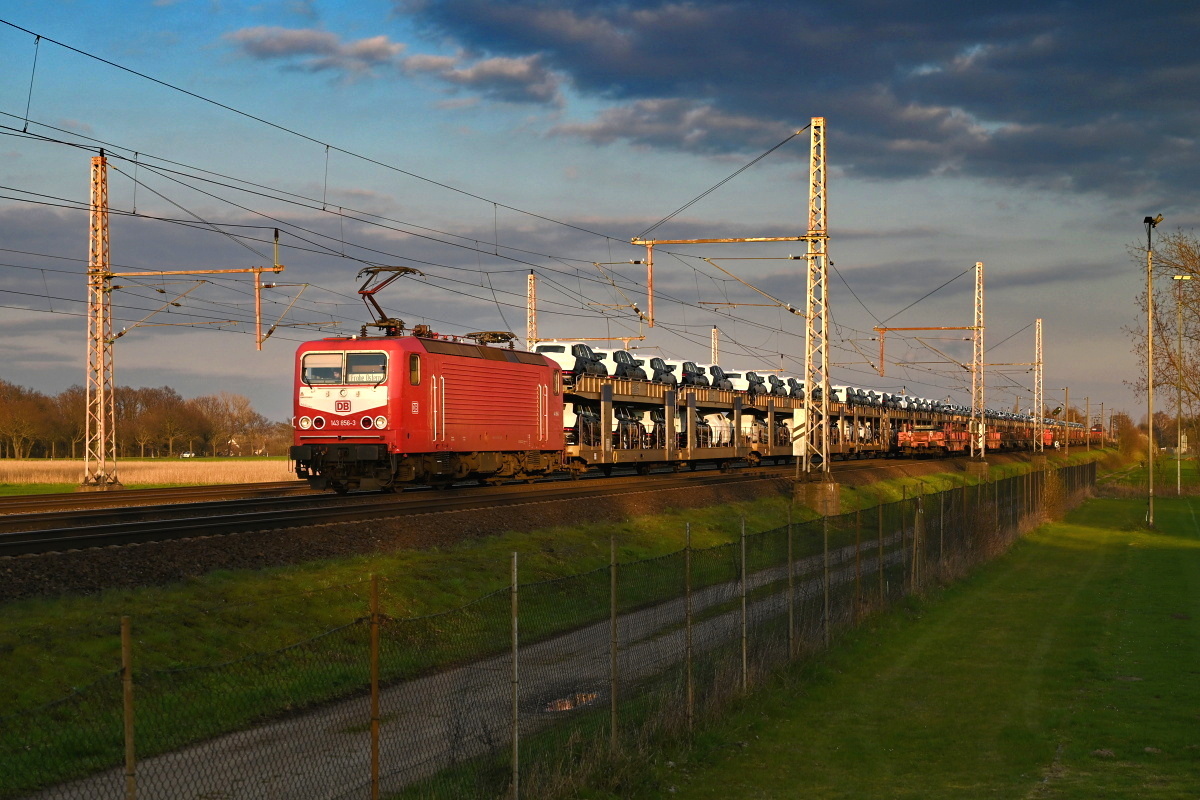 Dto. 143 856-3 am 05.04.2023 im Abendlicht bei Dedensen-Gümmer (HDED) mit