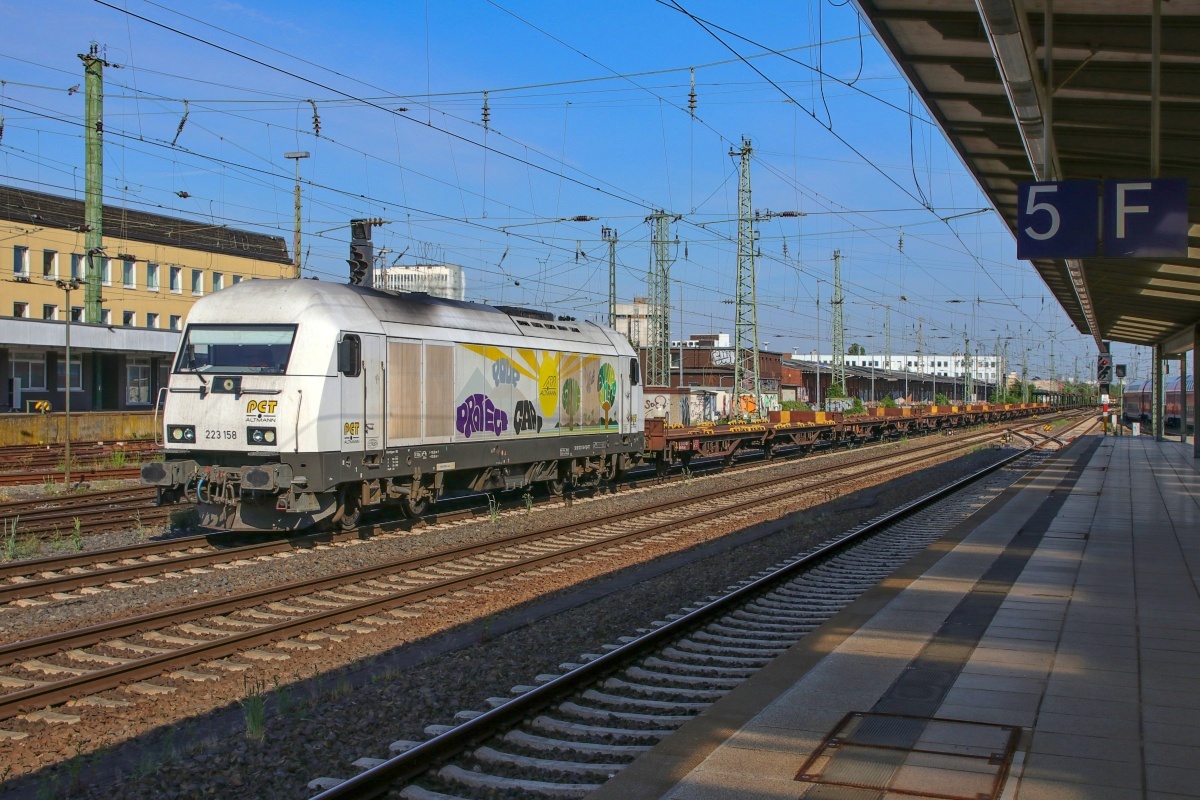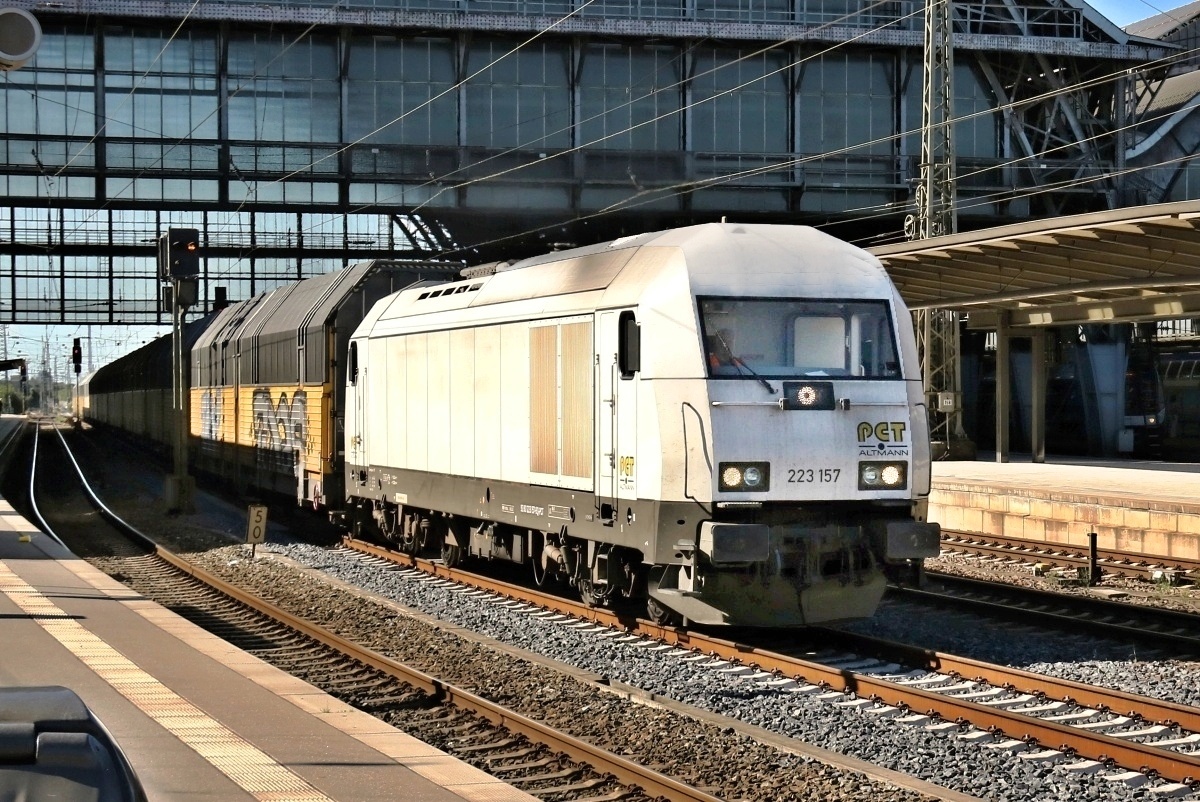 Dto. 223 158-7 am 25.056.2018. Die Lok passierte hier den Bremer Hbf mit unbeladenen Ars