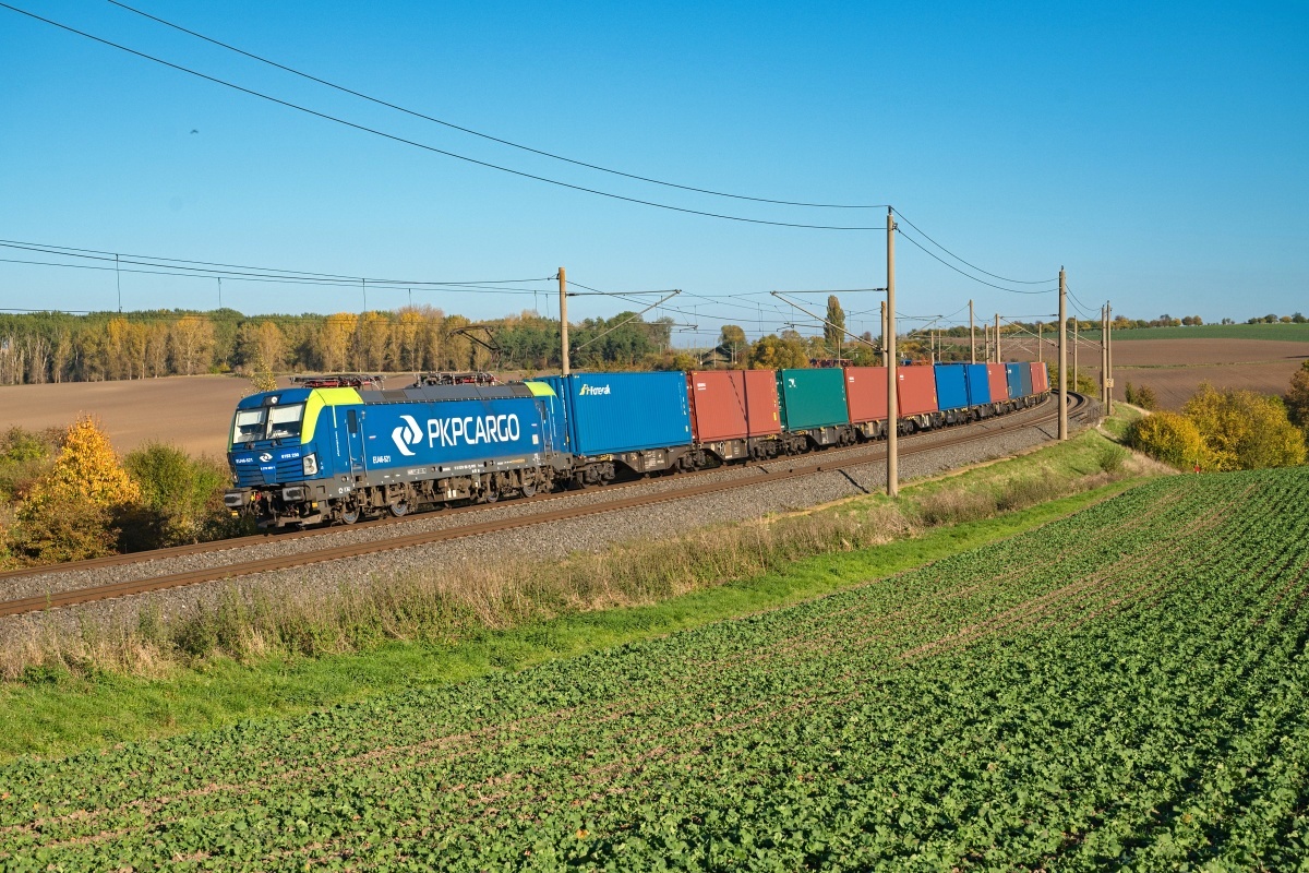 blauen Stirnseiten und 20 Jahre PKP Werbung am Fr 03.09.2021. Hier war die Lok