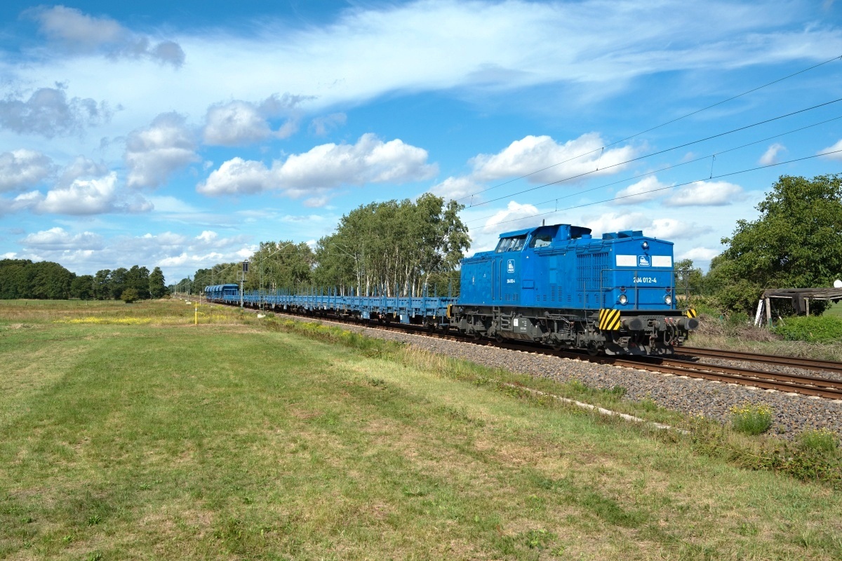 Dto. 203 215-9 am 09.09.2022 bei Jütrichau (LJR) mit einem Schotterwagenzug