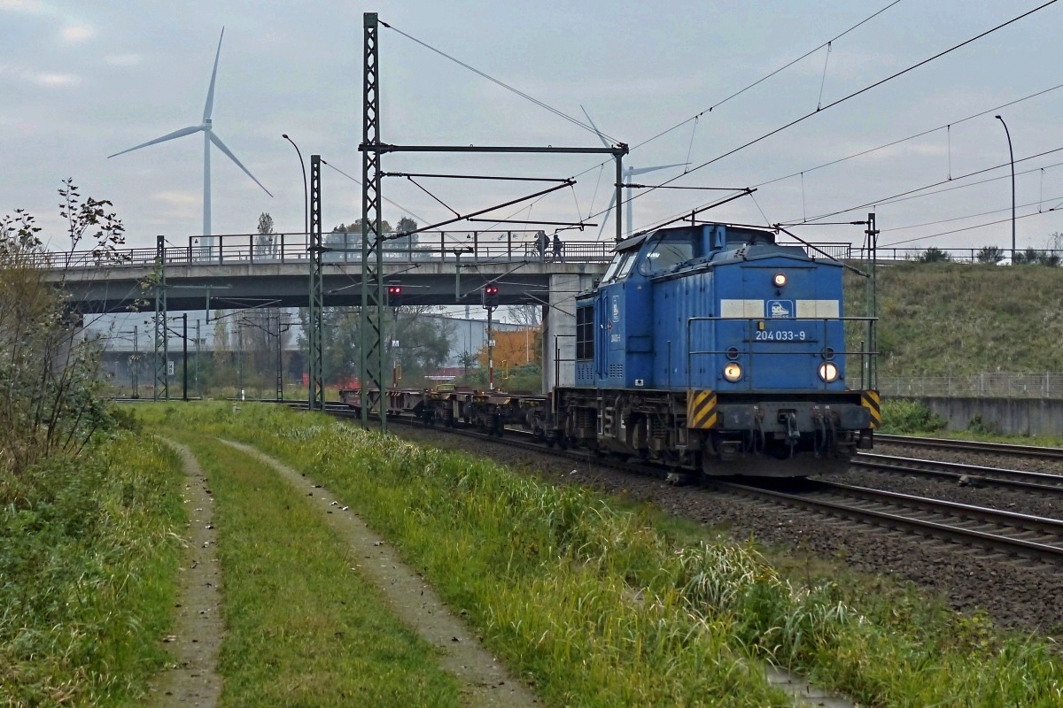 rangierte hier am 09.11.2017 beim Umspannwerk Hamburg-Dradenau 2x unbeladene