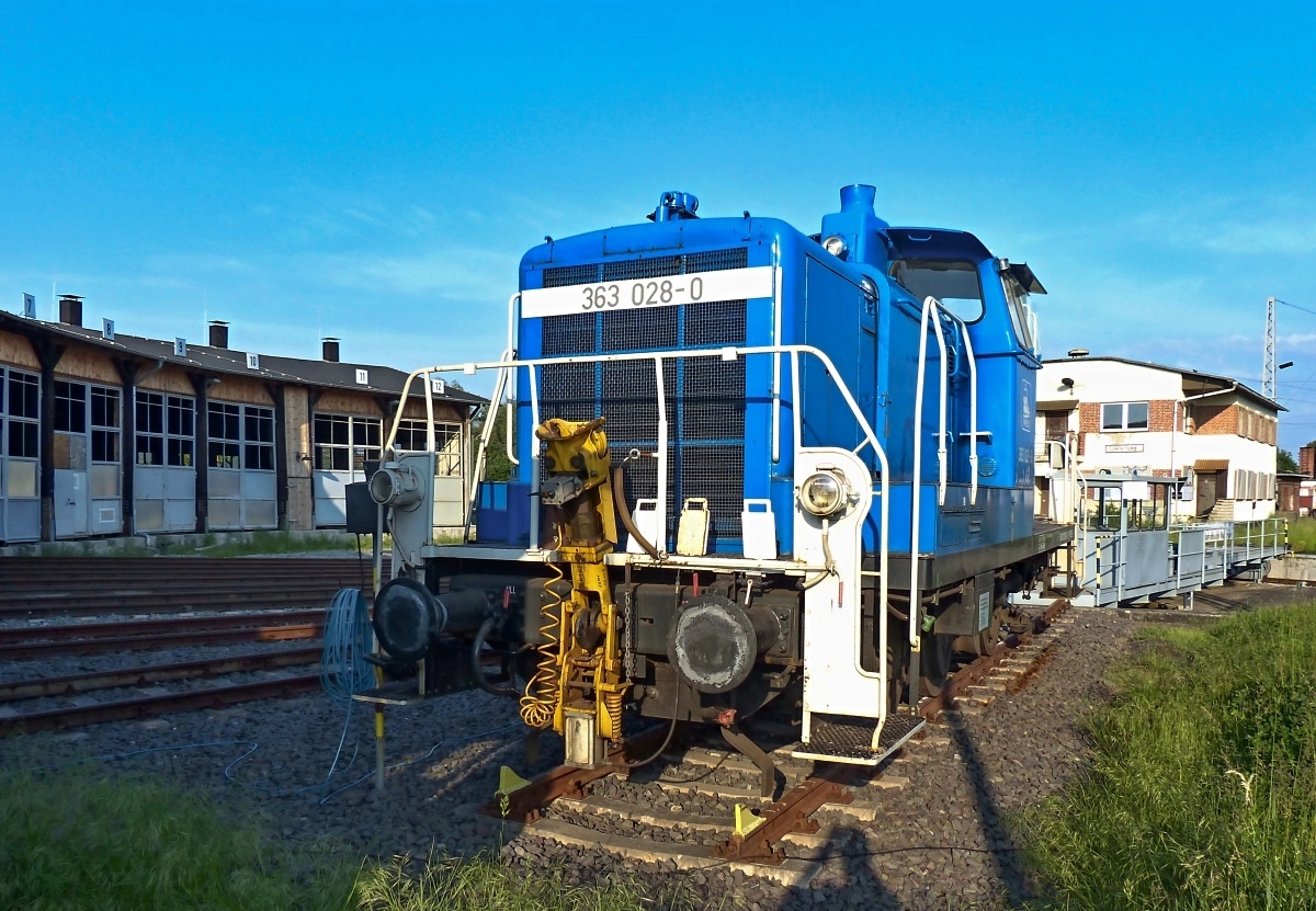 363 028-0 (NVR 98 80 3363 043-1 D-PRESS) am 26.05.2014 abgestellt vor dem Lokschuppen in Wismar...