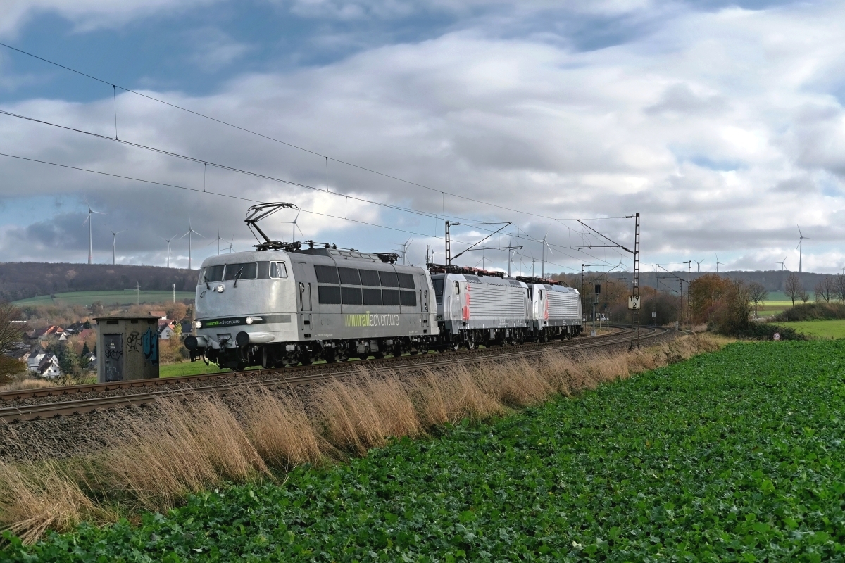 Dto. 103 222-6 am 26.11.2022 bei Benhausen (HBNS) mit der Überführung von den Akiem Loks 189 112-6 und 189 104-3 in Rtg. Paderborn (EPD)...