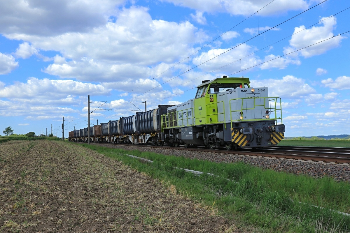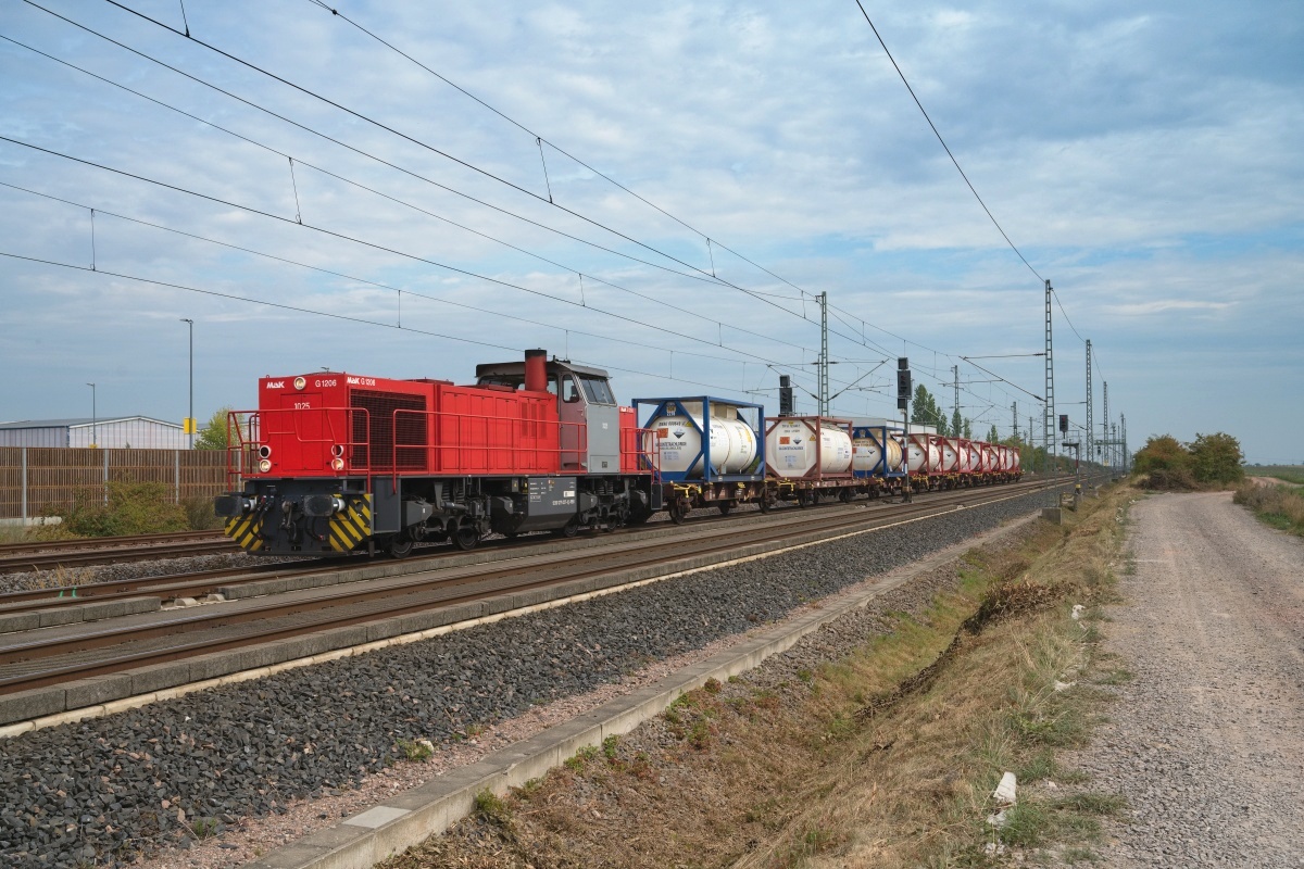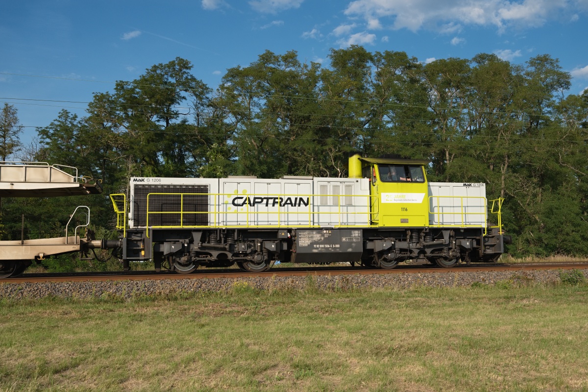 war hier am 07.09.2022 bei Jütrichau (LJR) mit einem Leer-BLG Autozug Rtg.