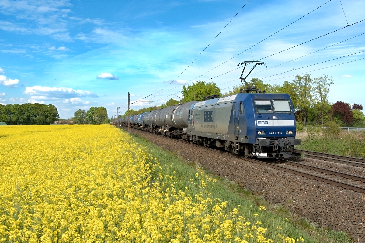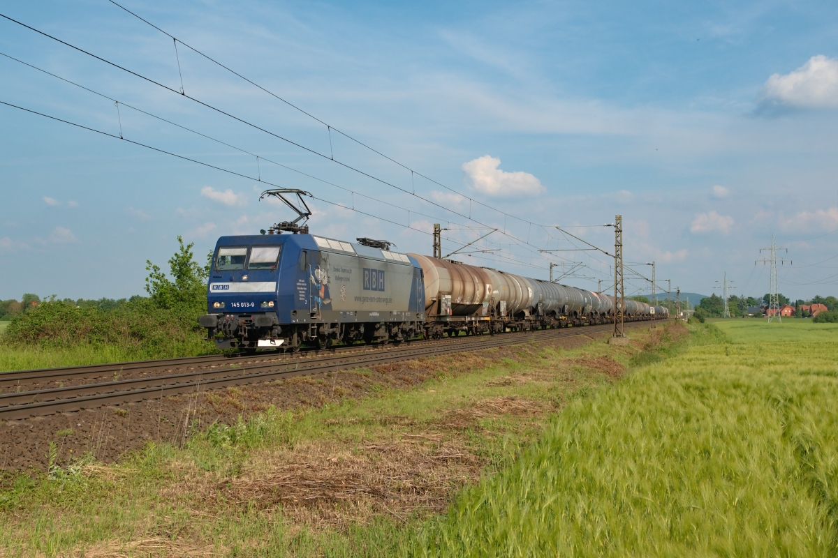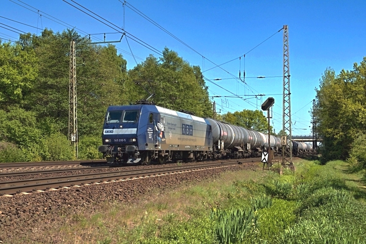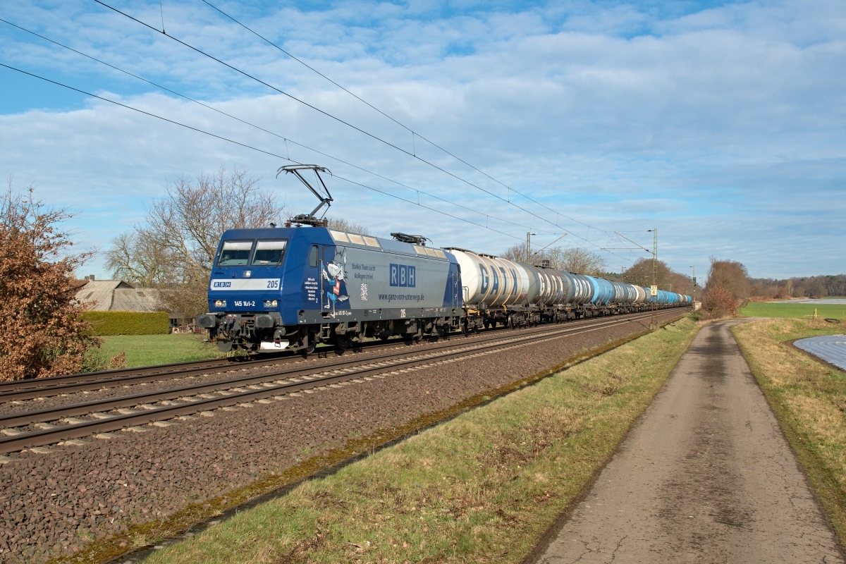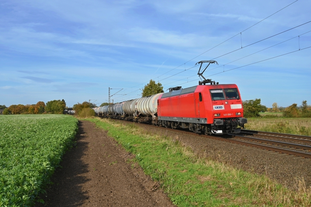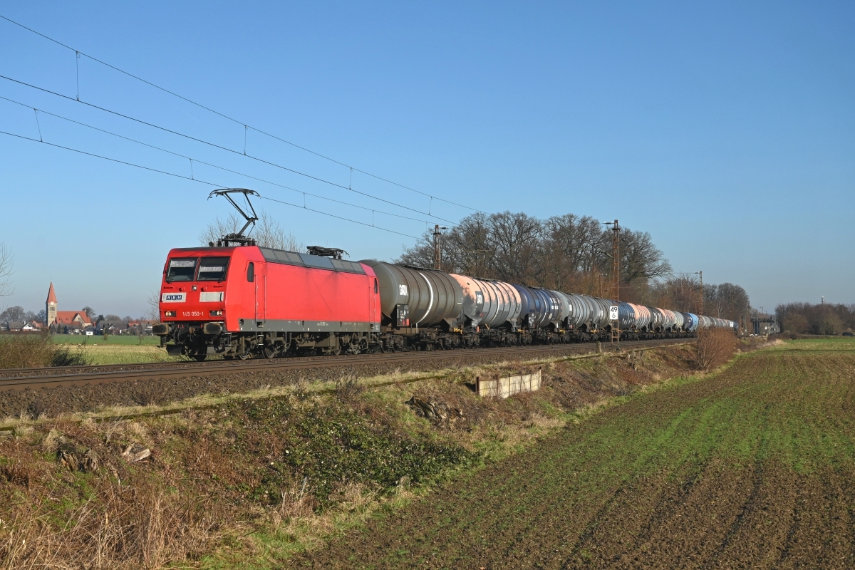 Fuchs bei Eilvese (HEIV) mit 145 064-2 und einem Kesselwagenzug Rtg.