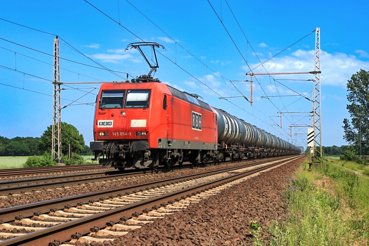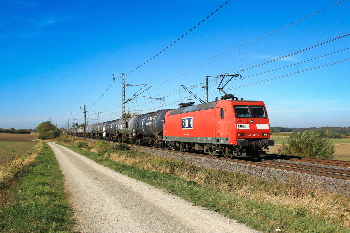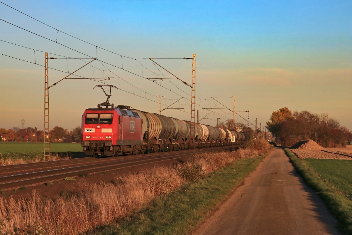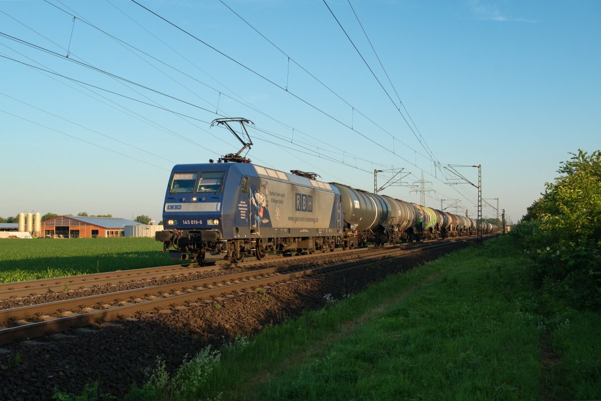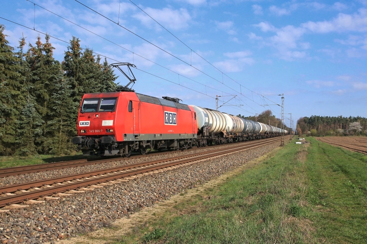 Fuchs bei Eilvese (HEIV) mit 145 064-2 und einem Kesselwagenzug Rtg.