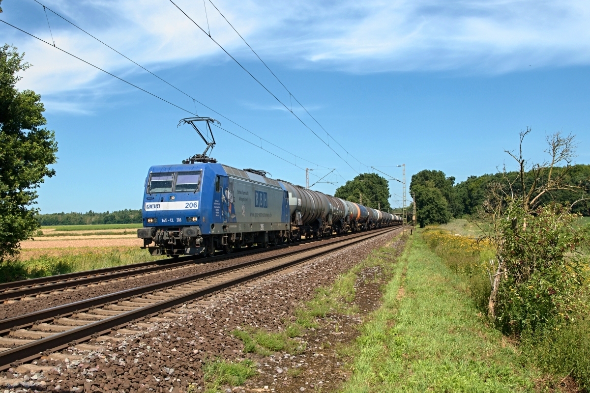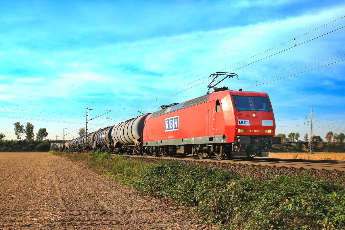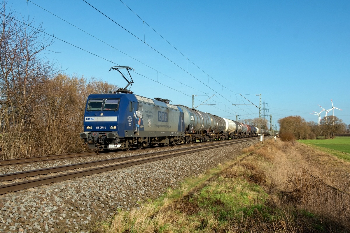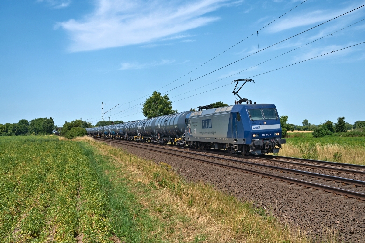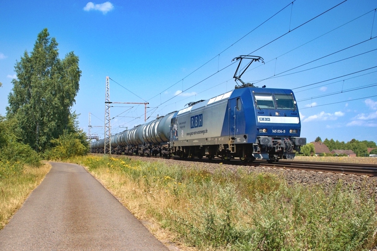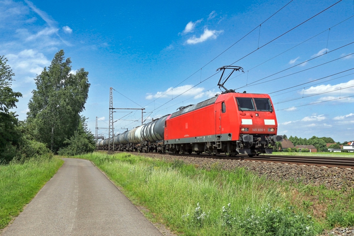 Fuchs bei Eilvese (HEIV) mit 145 064-2 und einem Kesselwagenzug Rtg.