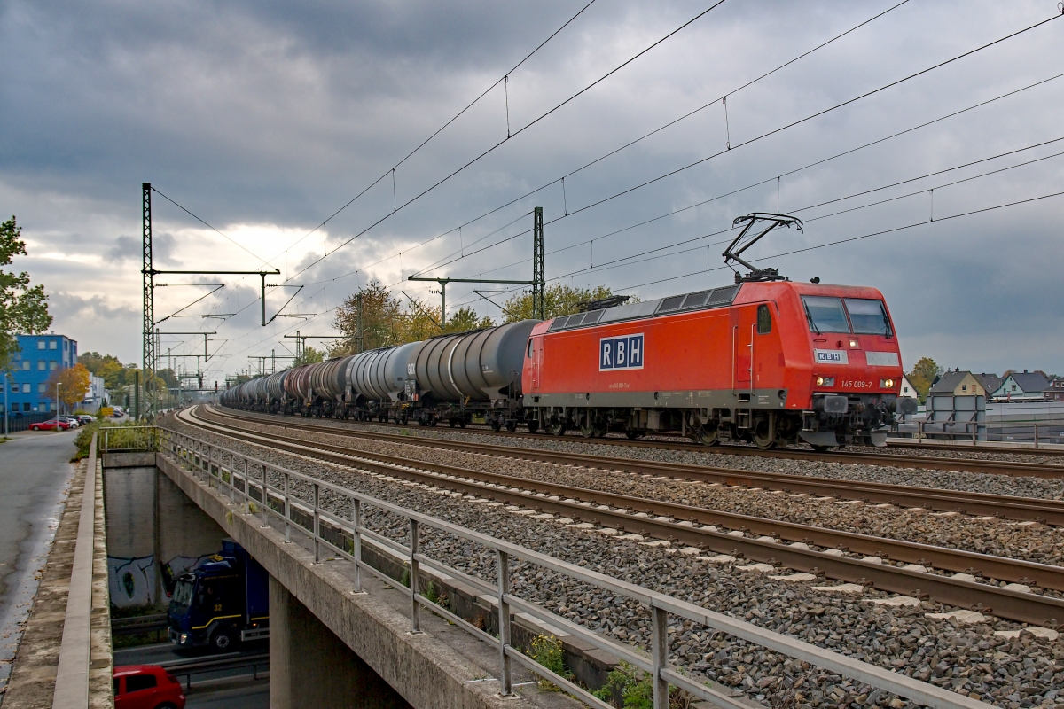 Dto. 145 009-7 am 05.11.2019. Hier passierte die Lok für "MinOl EBS" Bad