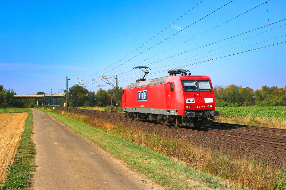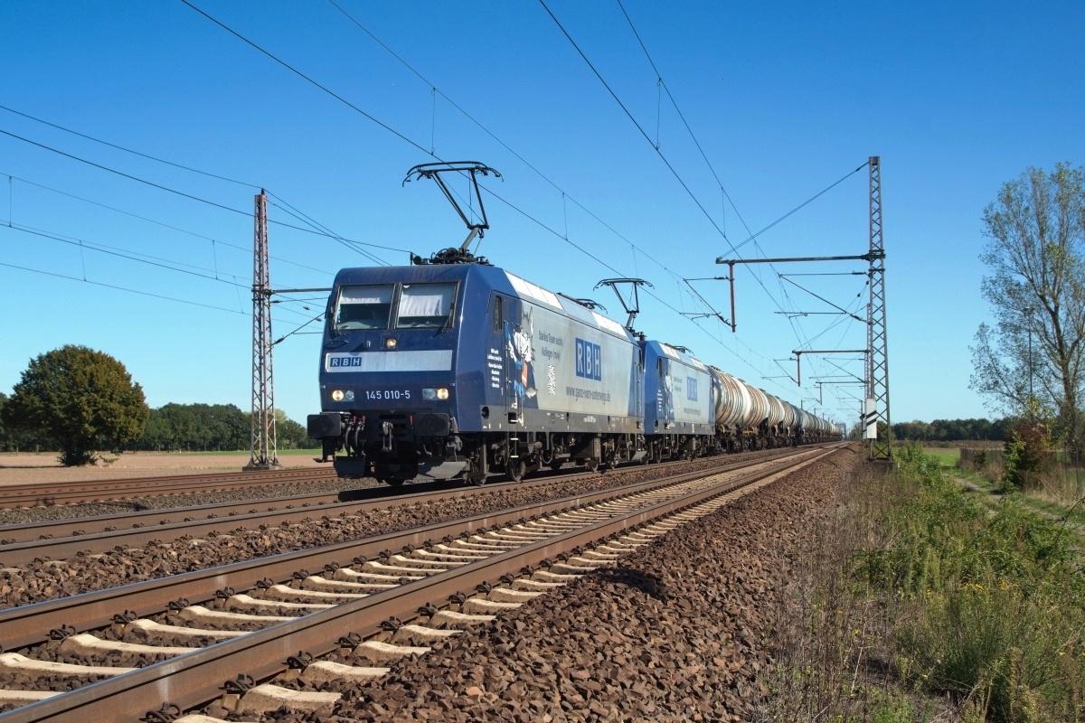 Dto. 145 010-5 am 21.09.2019 bei Dedensen-Gümmer (HDED) im inzwischen aktuellem blau-sibernem RBH