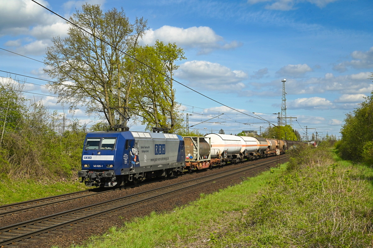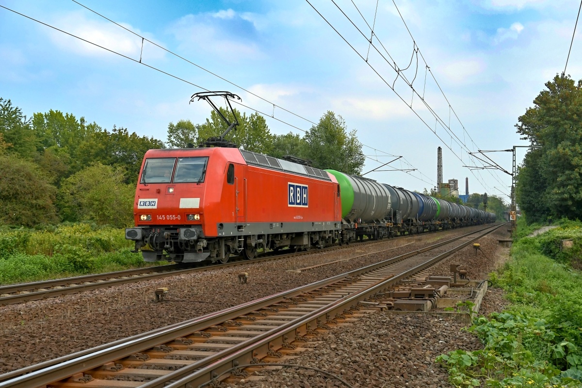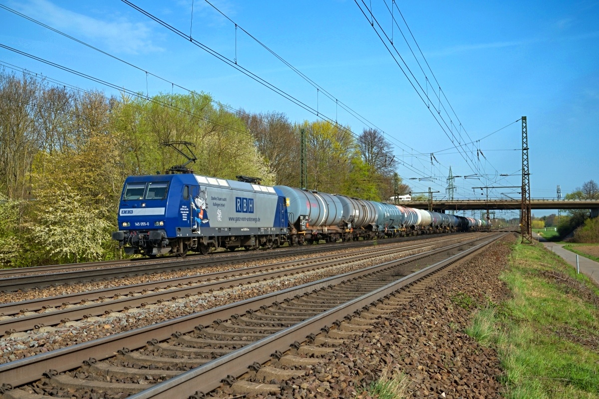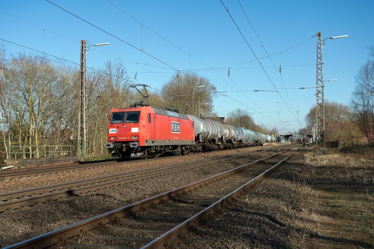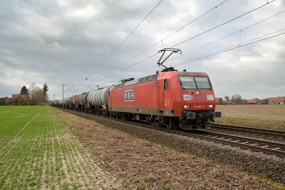 145 021-2 (w) und einem Kesselwagenganzzug EZ Rtg. Westen/Löhne...