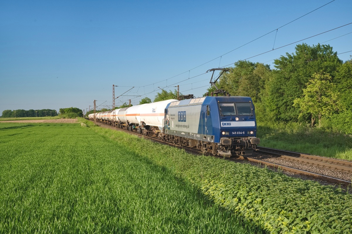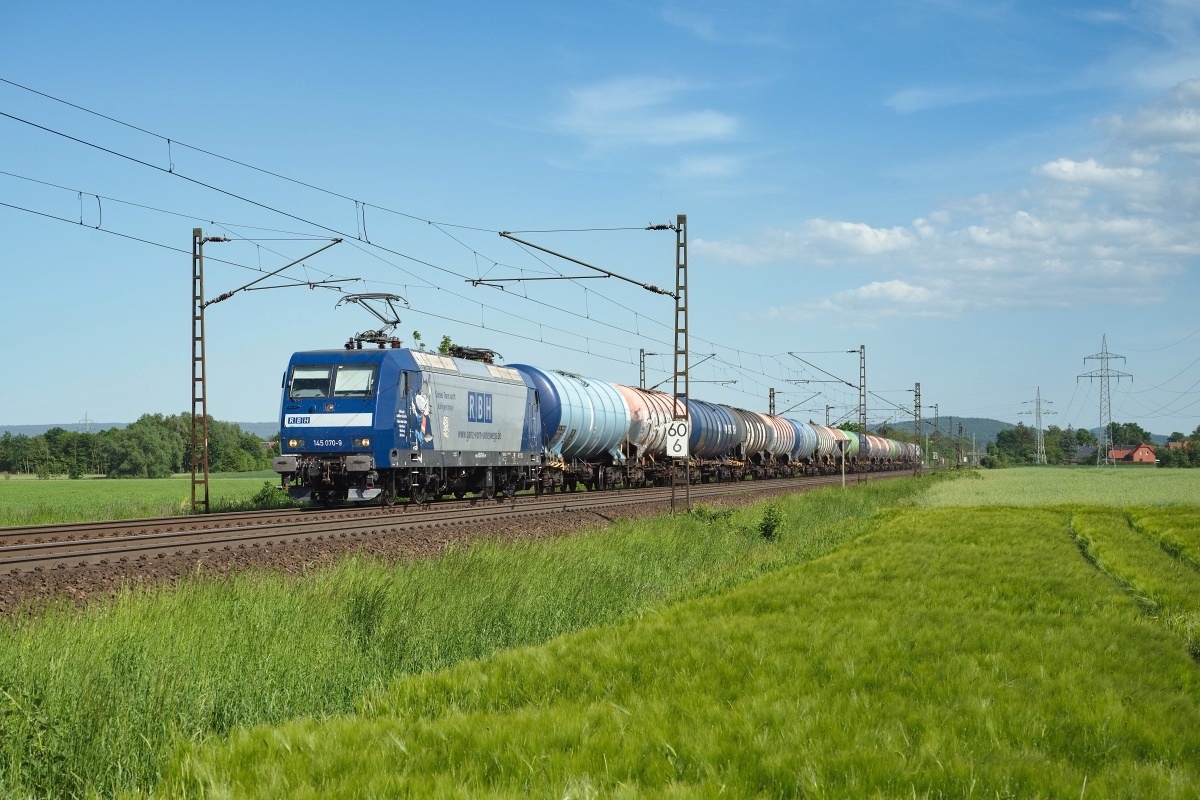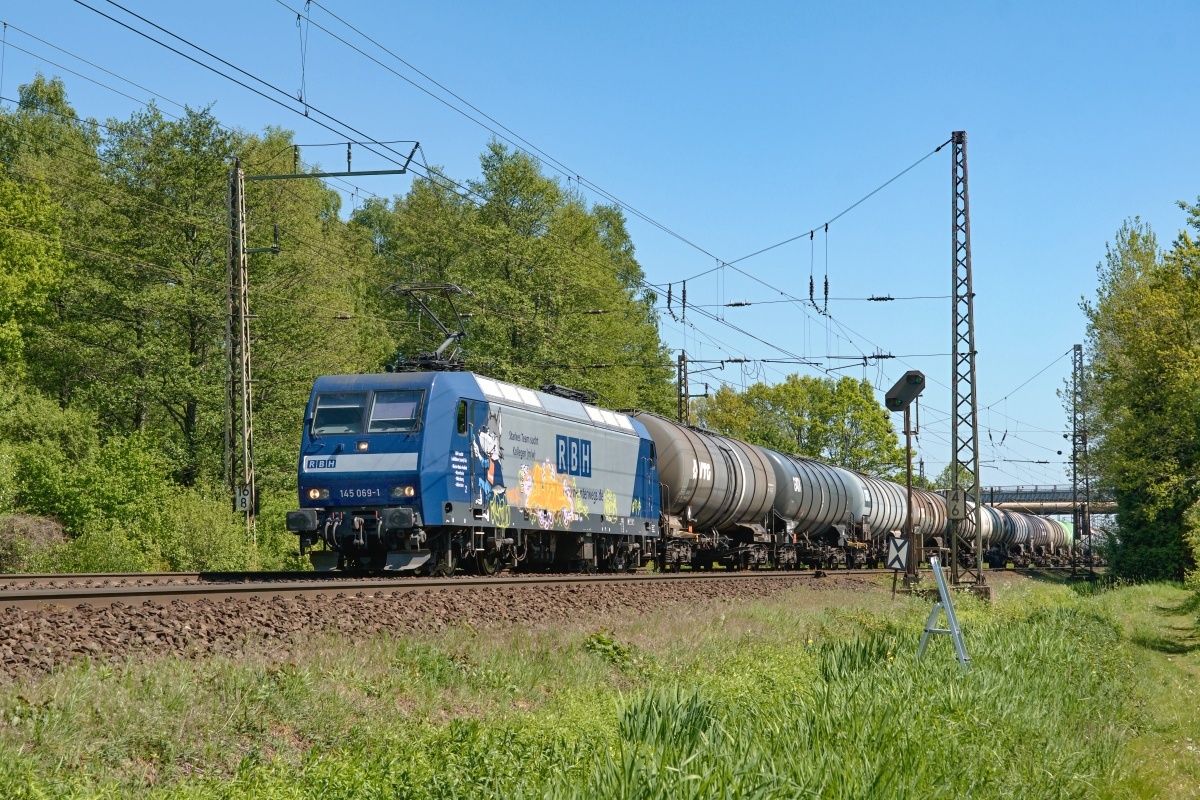 Dto. 145 070-9 im aktuell blauen RBH Design am 15.05.2024 bei Bückeburg