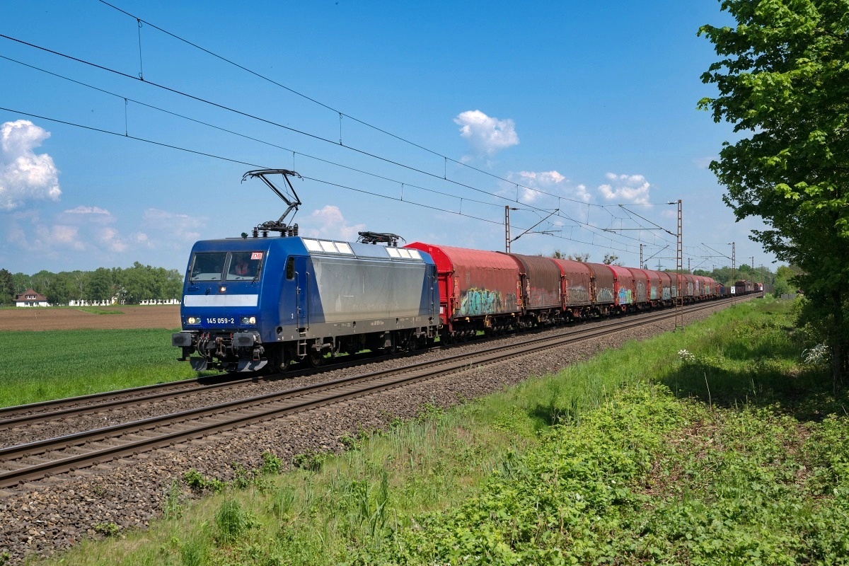 Dto. 145 008-9 am 28.05.2021 bei Kirchhorsten (HKHN). Hier war die Lok zwar
