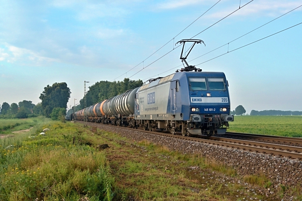 Dto. 145 101-2 am 30.07.2021 früh morgens bei Bückeburg (HBKB) mit