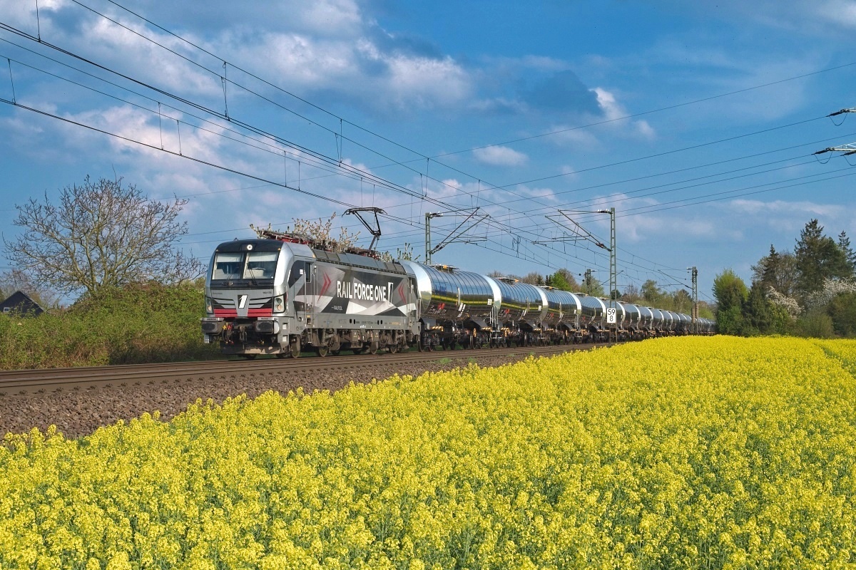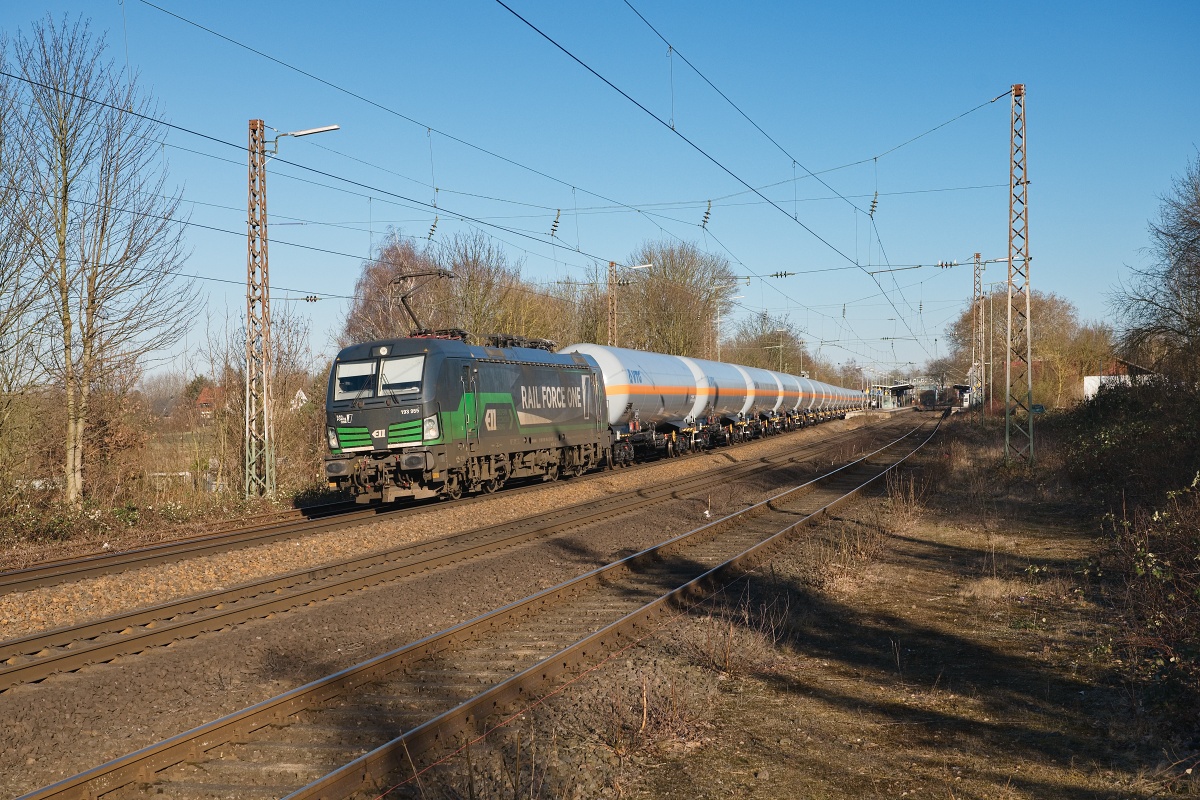 Dto. 193 955-2 am 18.02.2025 im Bf Bückeburg (HBKB) mit Gaskesselwagen Rtg.