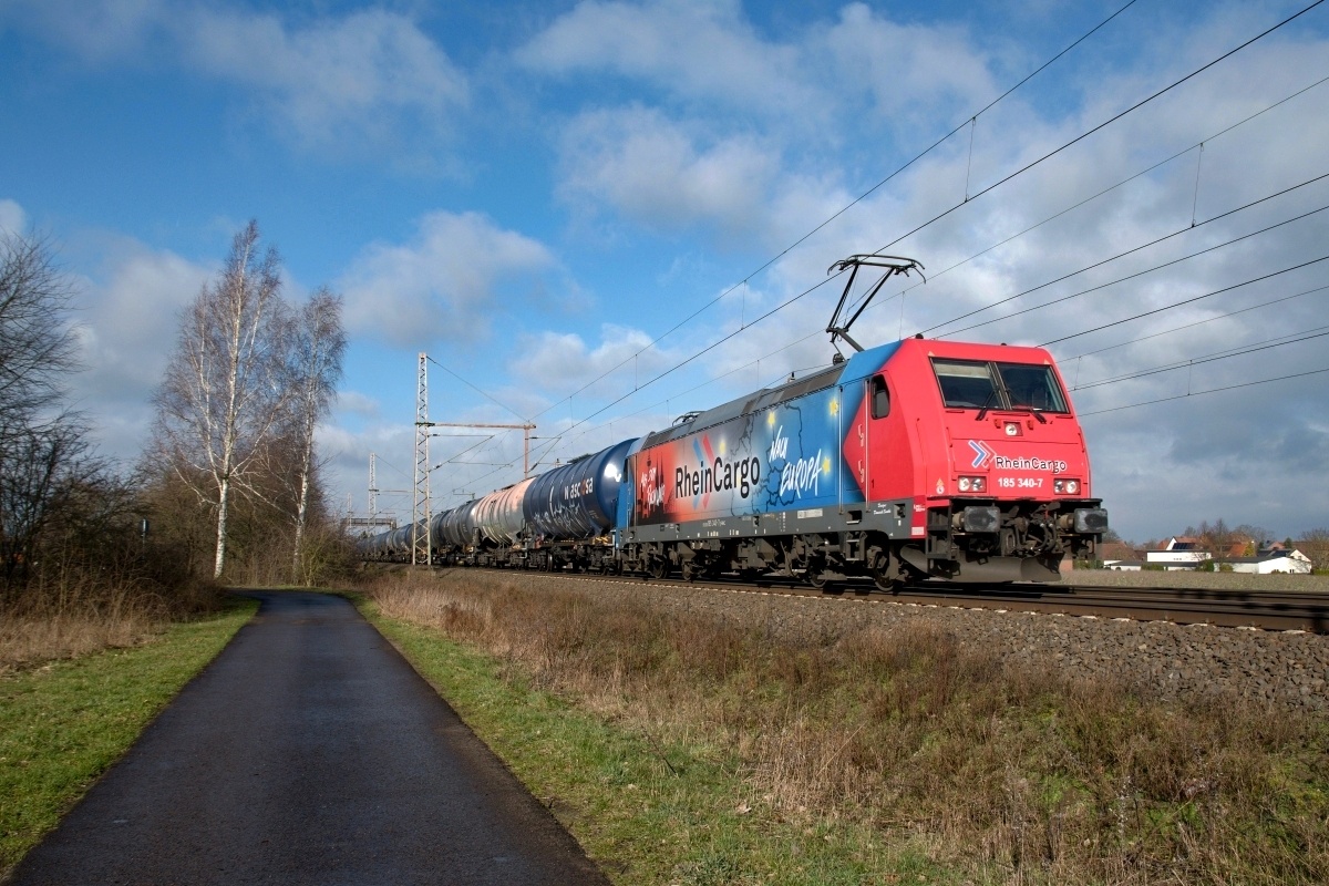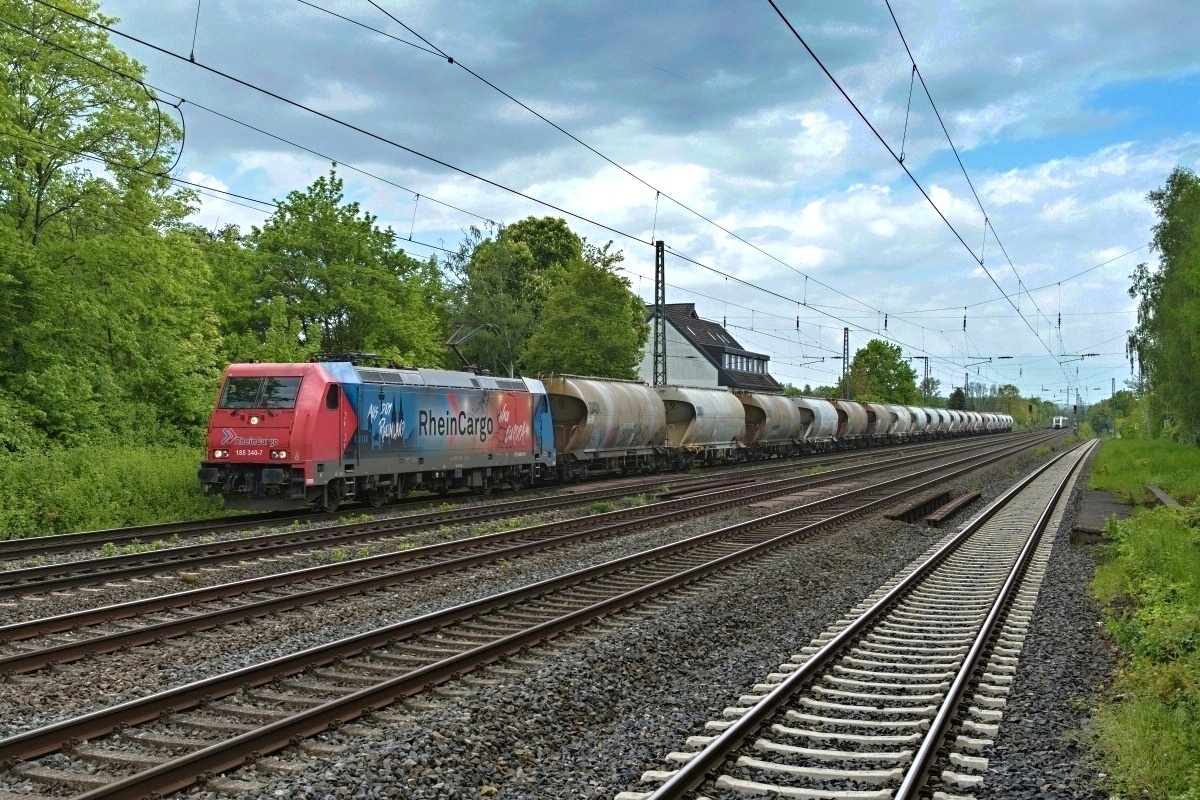 Dto. 185 340-7 dann endlich mal mit der blauen Stirnseite voraus aber auch