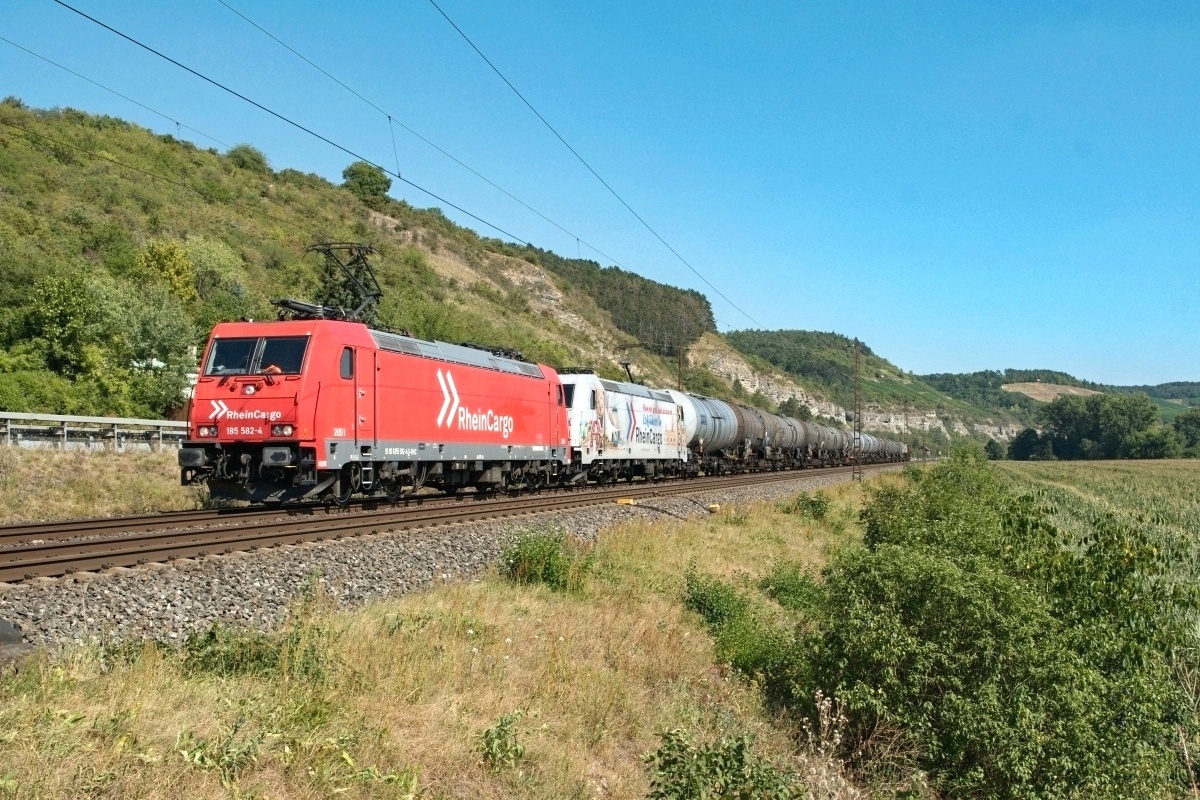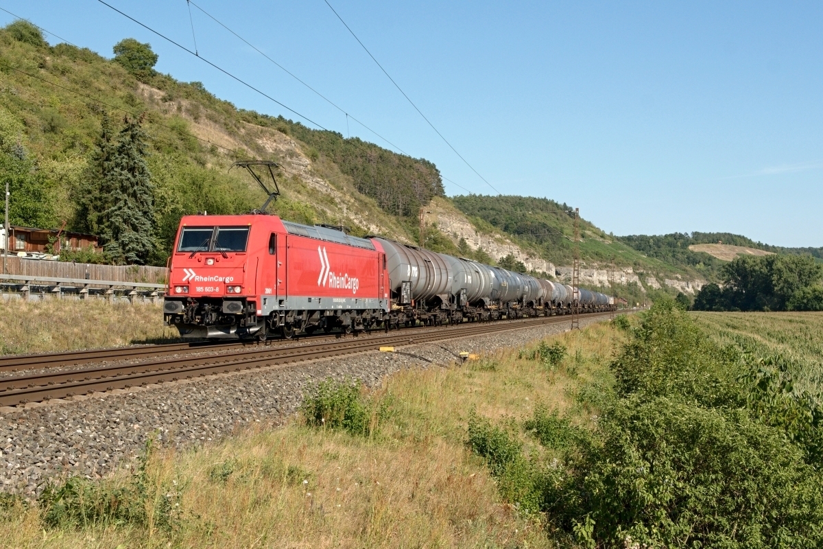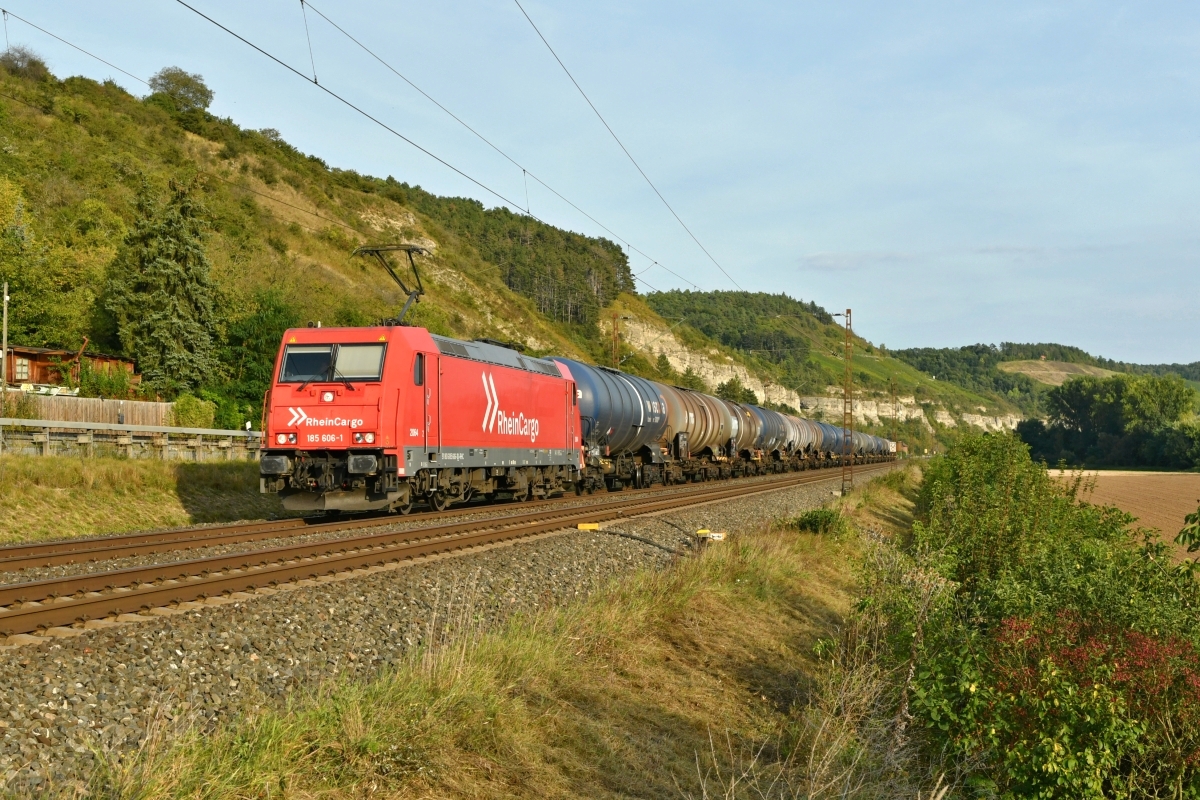 Dto. 185 603-8 am 11.10.2018 dann bei Thüngersheim mit Kesselwagen Rtg.