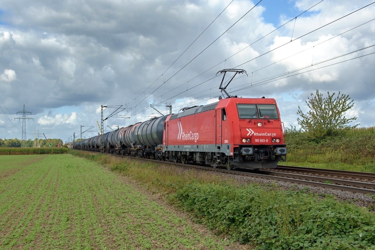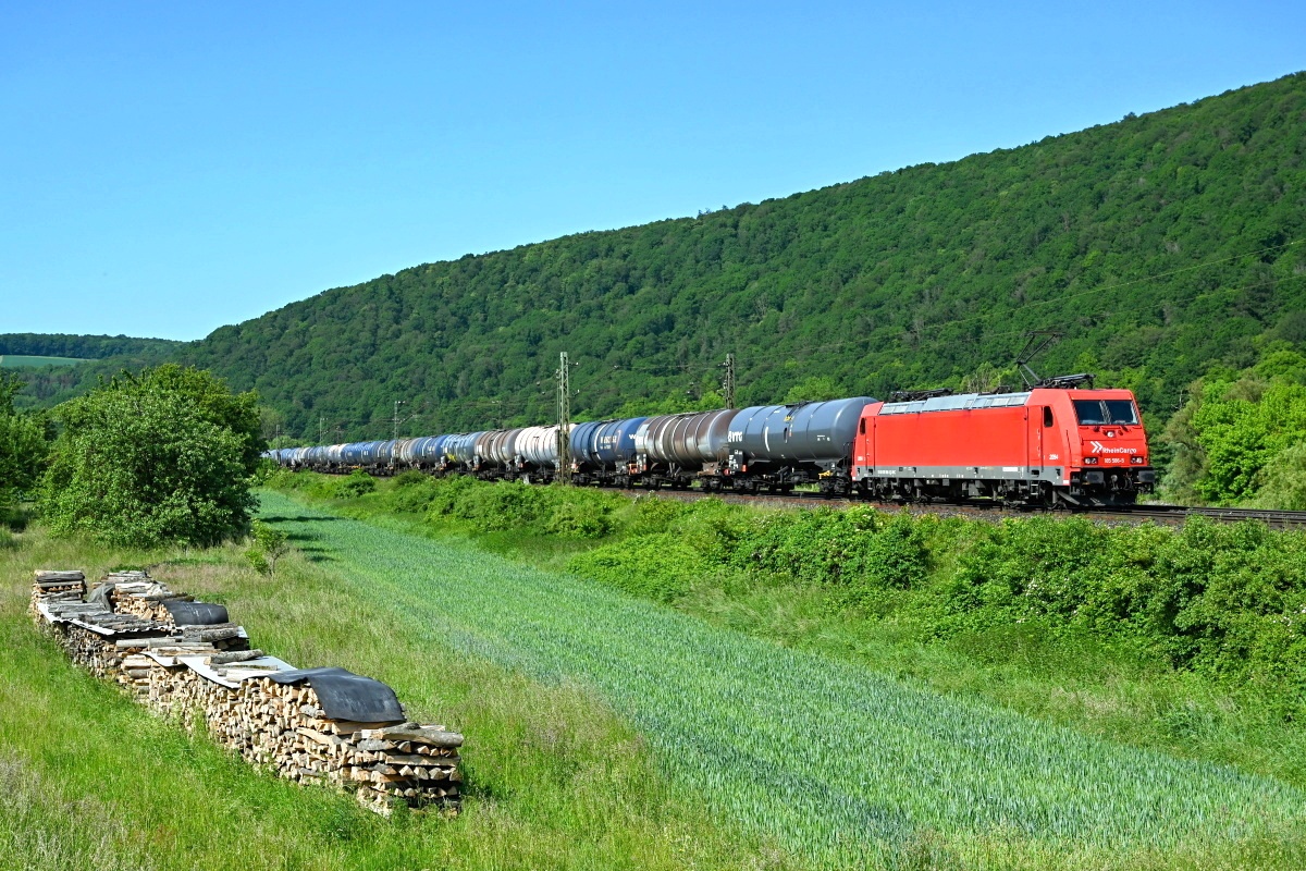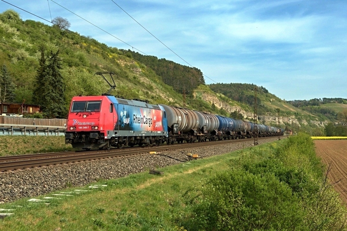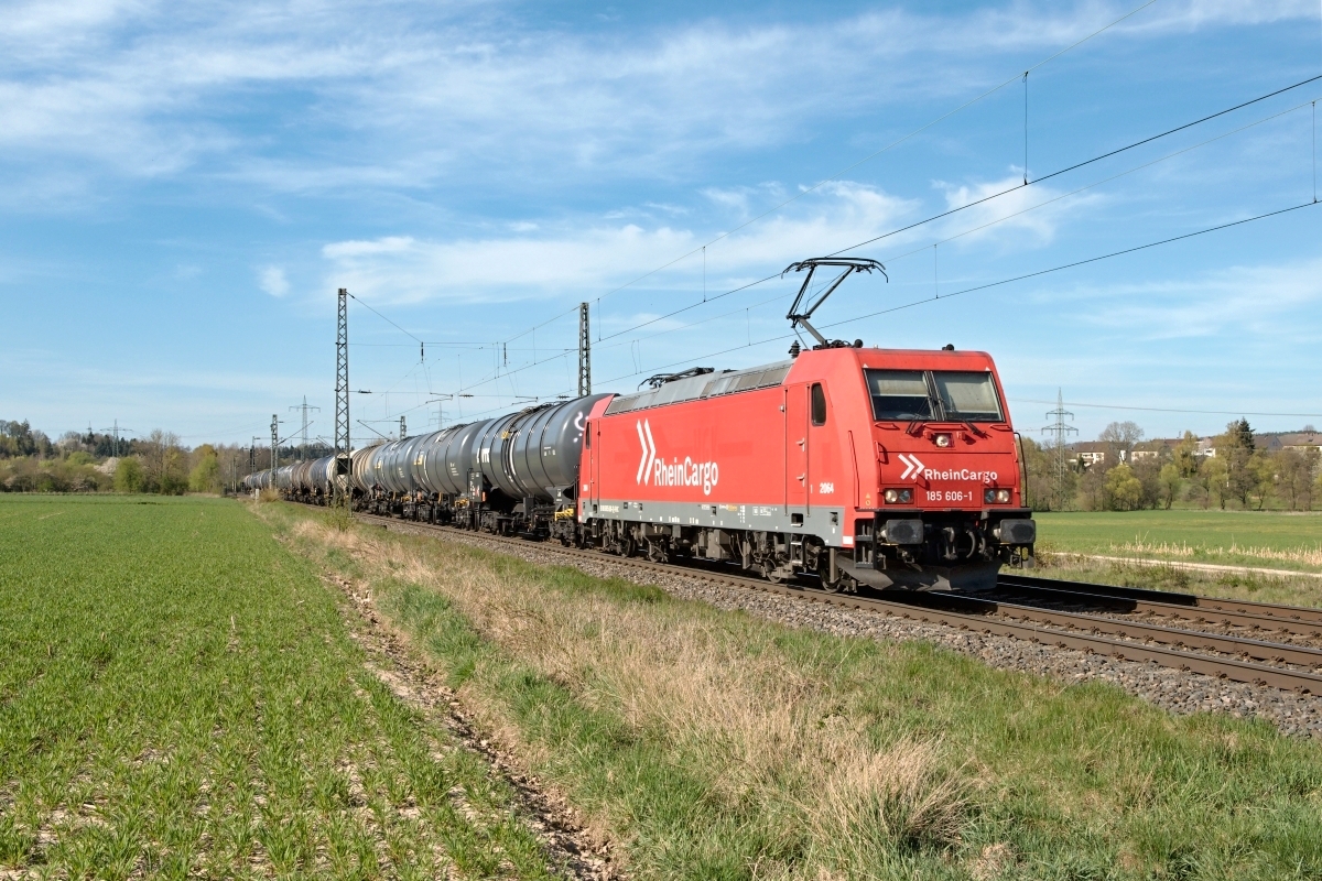Dto. 185 603-8 am 11.10.2018 dann bei Thüngersheim mit Kesselwagen Rtg.
