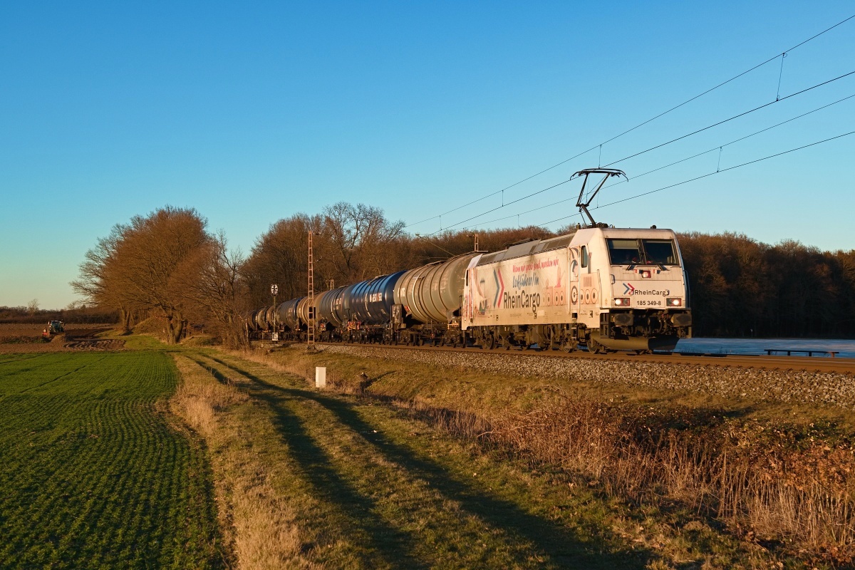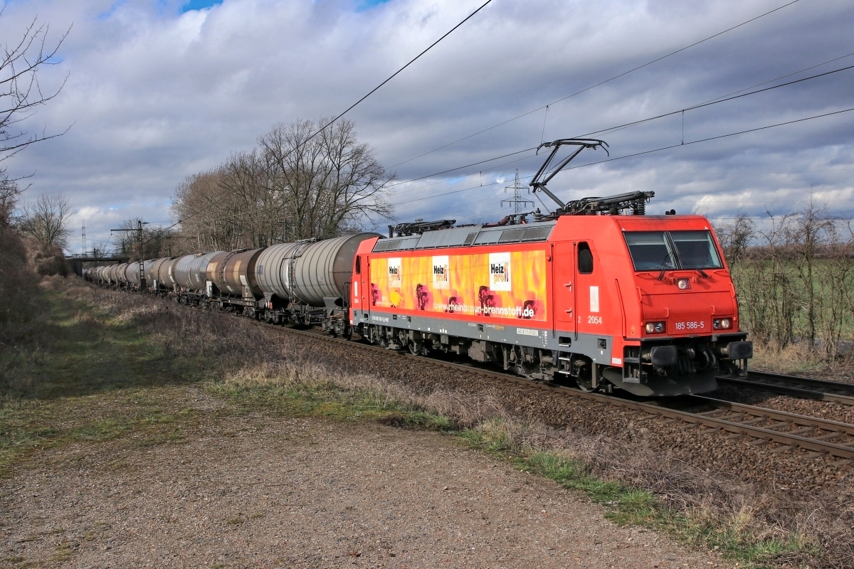 Dto. 185 586-5 am 07.03.2019 bei Ahlten (HALT) mit Kesselwagen