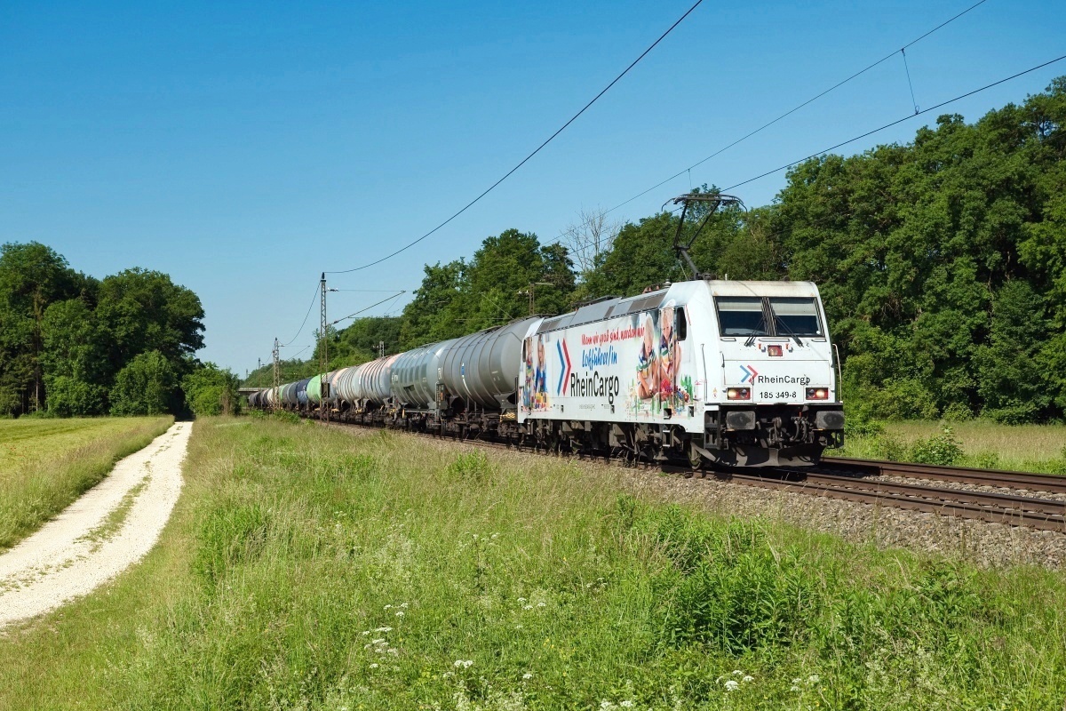 Dto. 185 349-8 "frisch gewaschen" am 10.06.2022 bei Nersingen (MNSG) mit