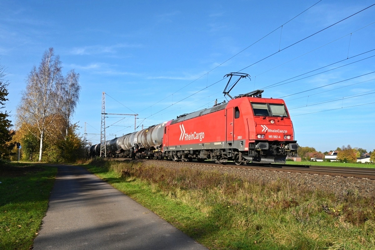 Dto. 185 582-4 am 29.10.2021 bei Dedensen-Gümmer (HDED) mit Kesselwagen in