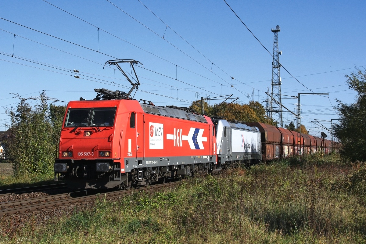 185 587-3 (NVR: 91 80 6185 587-3 D-RHC) mit kalter 187 073-2 (NVR: 91 80 6187 073-2 D-RHC) am