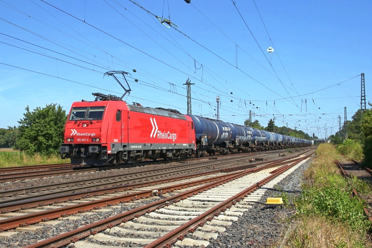 Dto. 185 587-3. Hier passierte die Lok am 19.07.2018 Bickenbach (FBI) mit