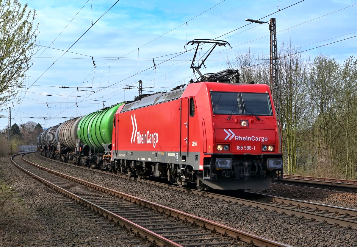 Dto. 185 588-1. Hier war die Lok am 30.03.2017 bei Bückeburg mit aktuellem "RheinCargo" Design