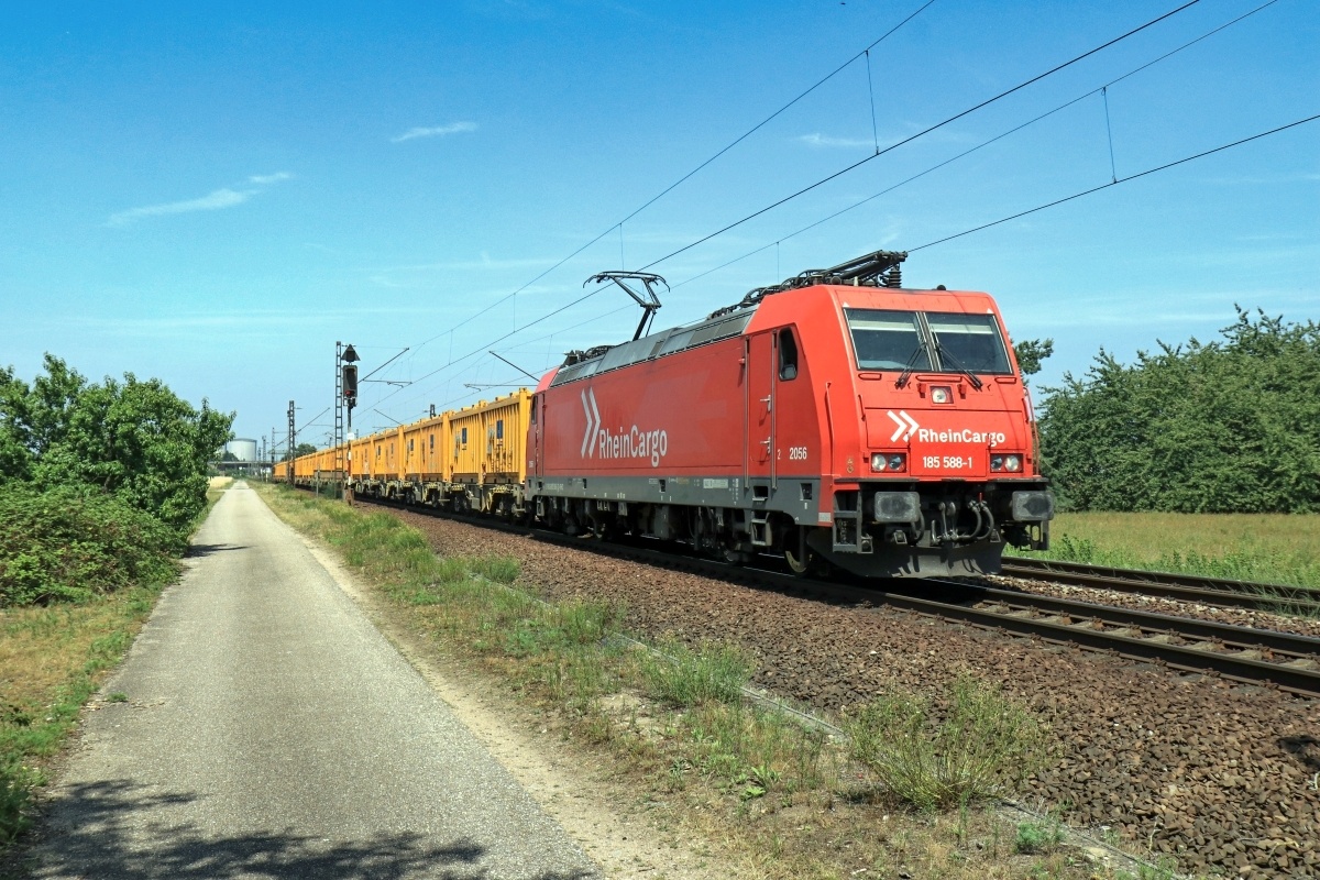 Dto. 185 588-1 am 16.07.2019. Die Lok passiert hier Waghäusel (RWG)