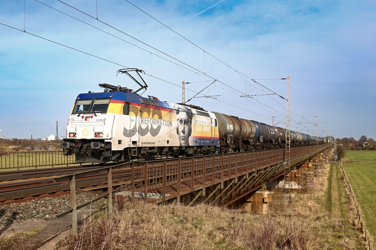 185 589-9 (NVR: 91 80 6185 589-9 D-RHC) am 04.03.2017 mit Kesselwagen