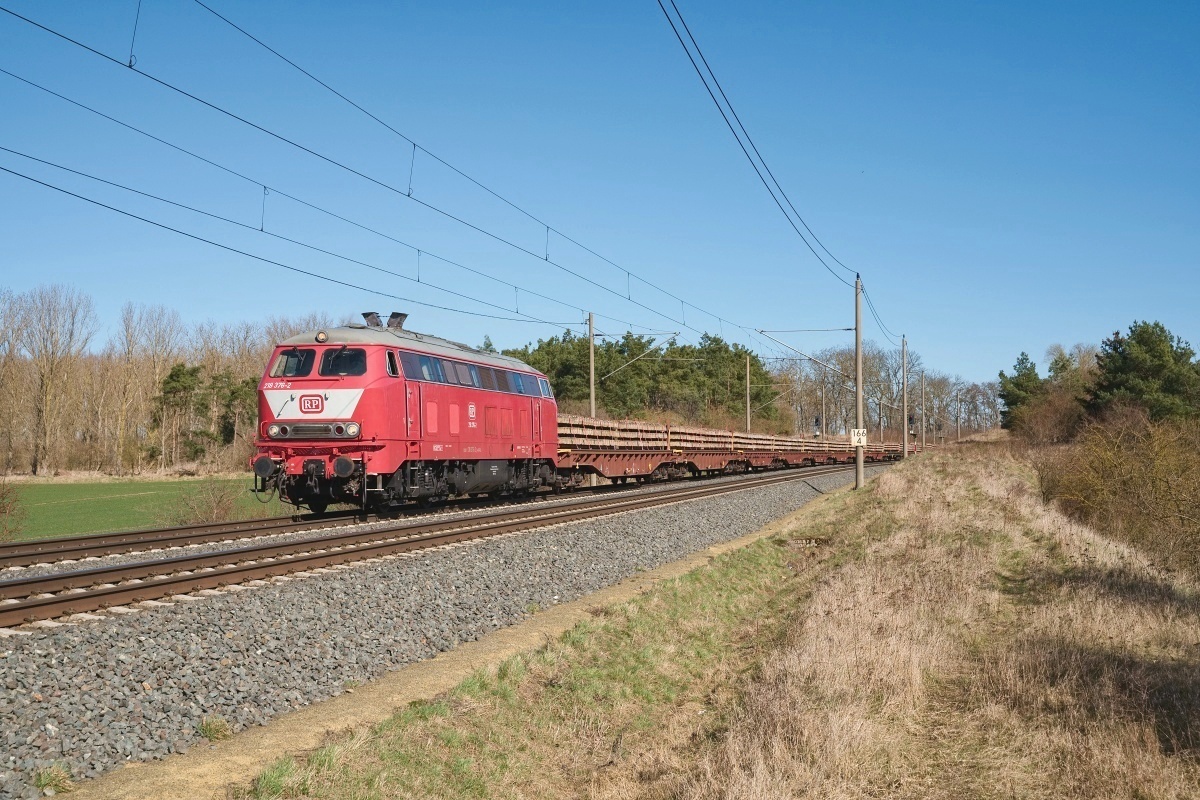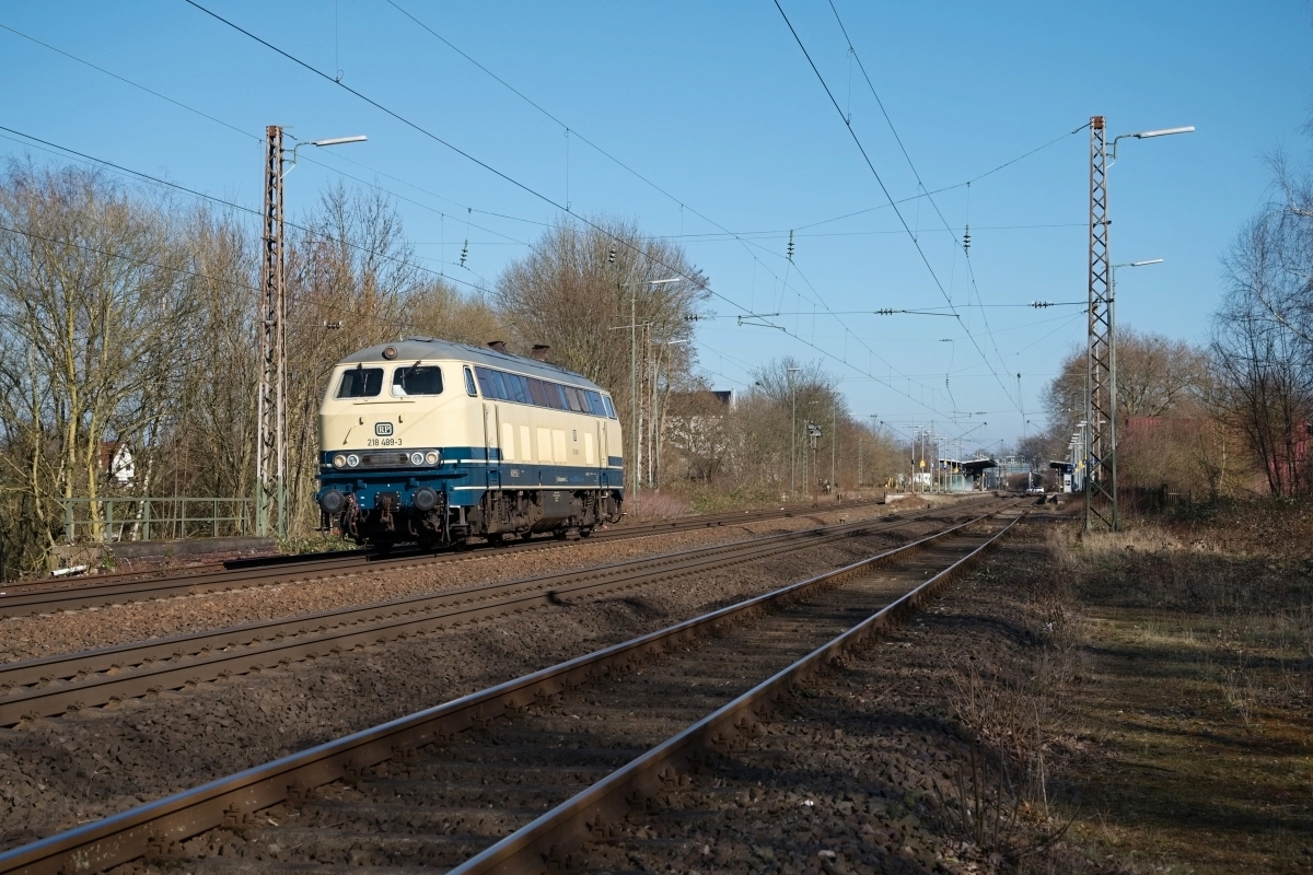 Dto. 218 376-2 am 18.03.2025 bei Ovelgünne (LOV) mit dem