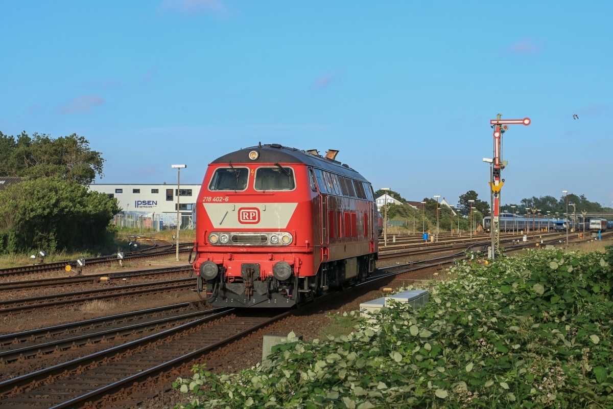 Dto. 218 402-6 als Tfzf/Umsetzen am 30.06.2019 im Westerländer Bahnhof. 218 402-6 ist zur Zeit