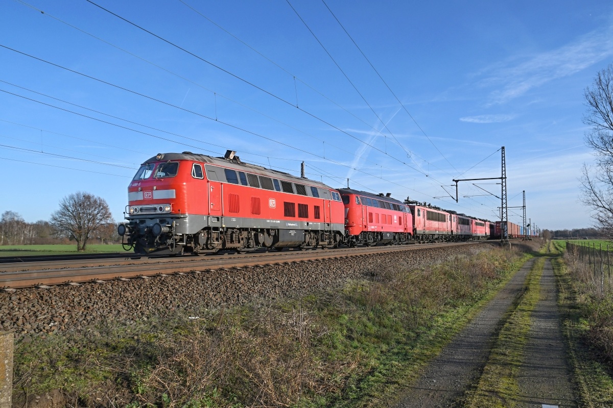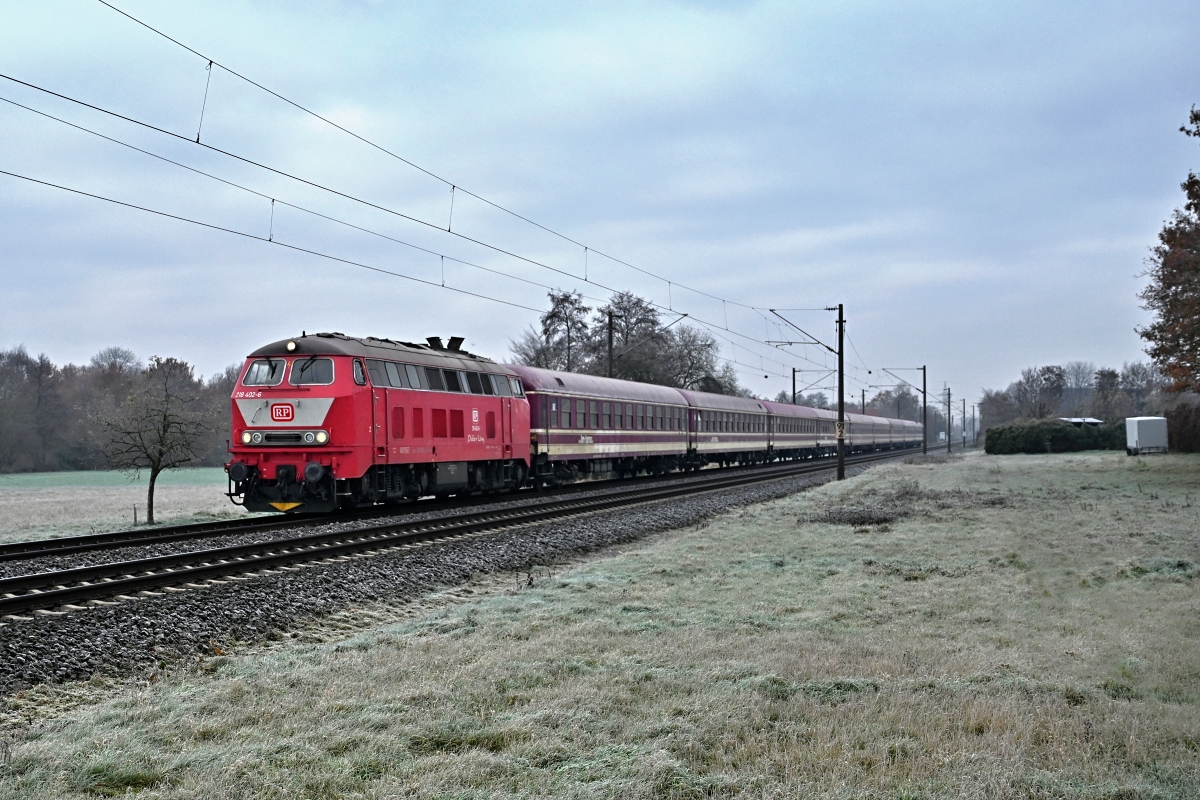 Dto. 218 402-6 am frostig/trüben 10.12.2022 bei Kirchlengern (HKLG)