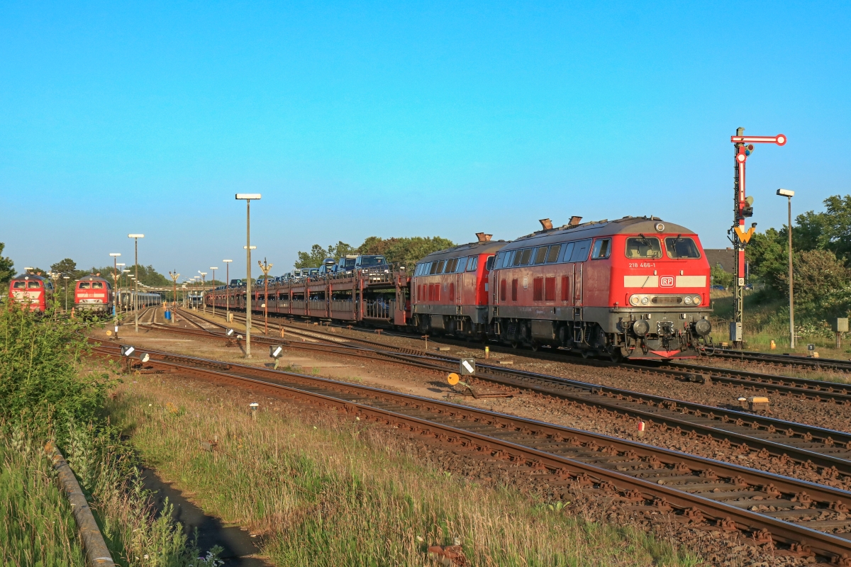 mit einem Sylt-Shuttle nach Westerland Bf unterwegs... RP 218 466-1 ist zur Zeit an