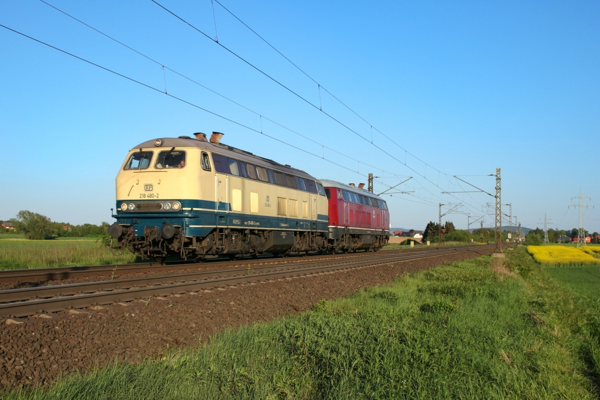218 480-2 passierte hier am 04.05.2018 Dankersen im Doppel mit 225