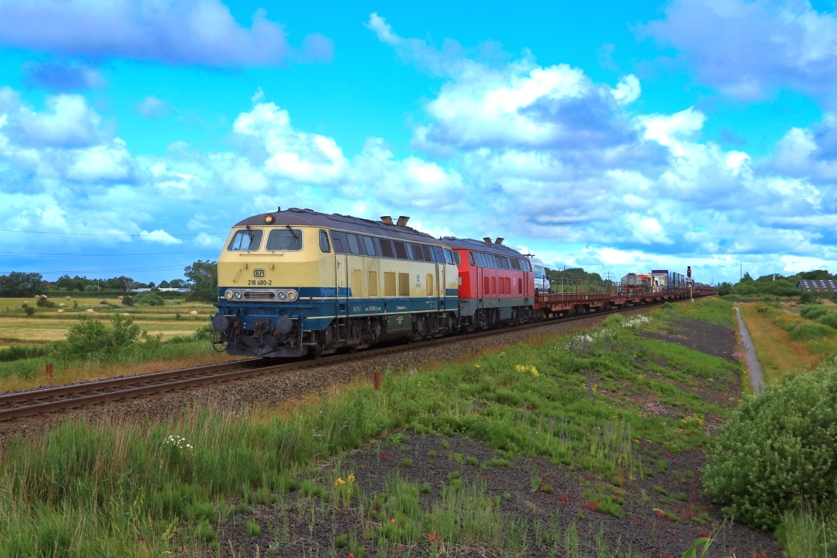 umgekehrte Reihenfolge (also mit 218 389-5 führend) am Morsumer Cliff bei Km