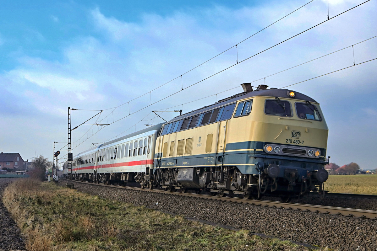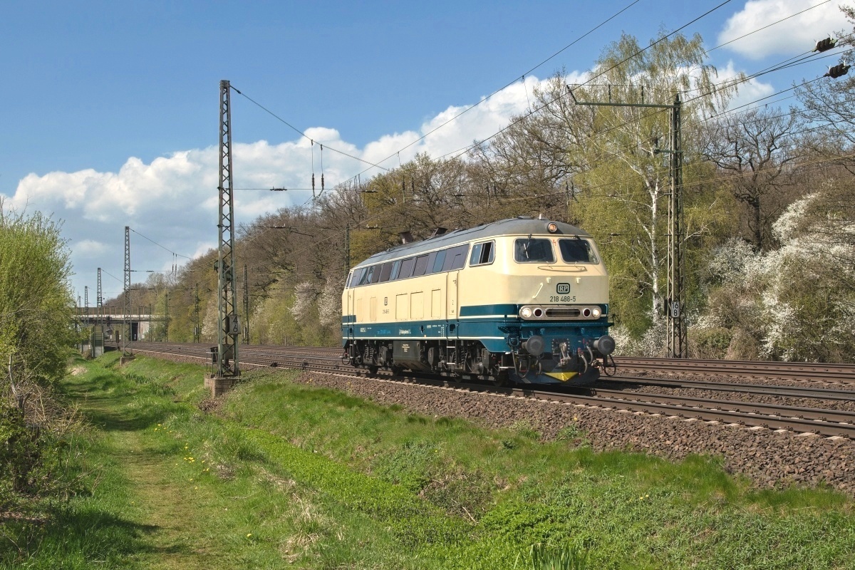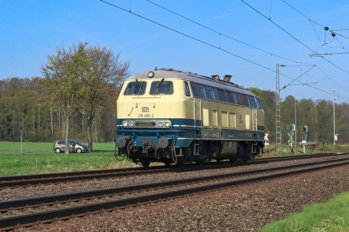 Dto. 218 480-2. Die Lok passierte hier am 19.04.2018 den alten Woltorfer