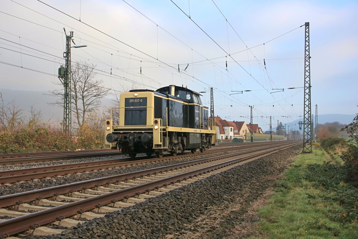Dto. 291 037-0 am 23.11.2018 im sich langsam lichtedem Morgennebel