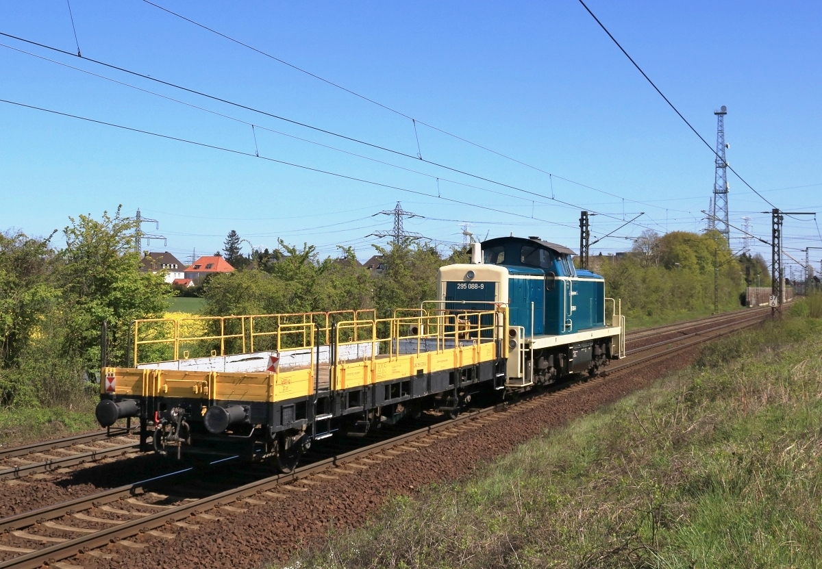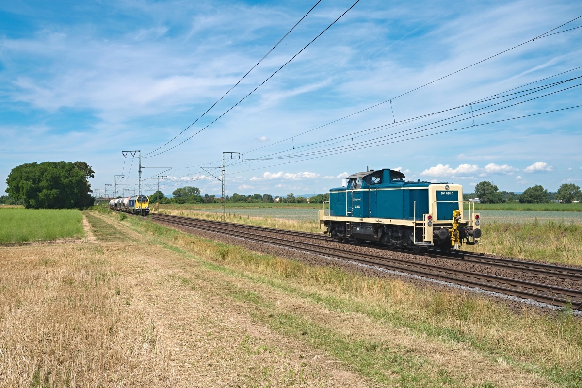 Der Zug mit 294 096-3 im Nachschuß mit dem Materialwagen Res (B-RPSYS