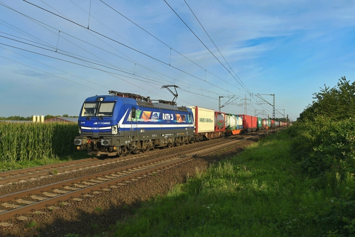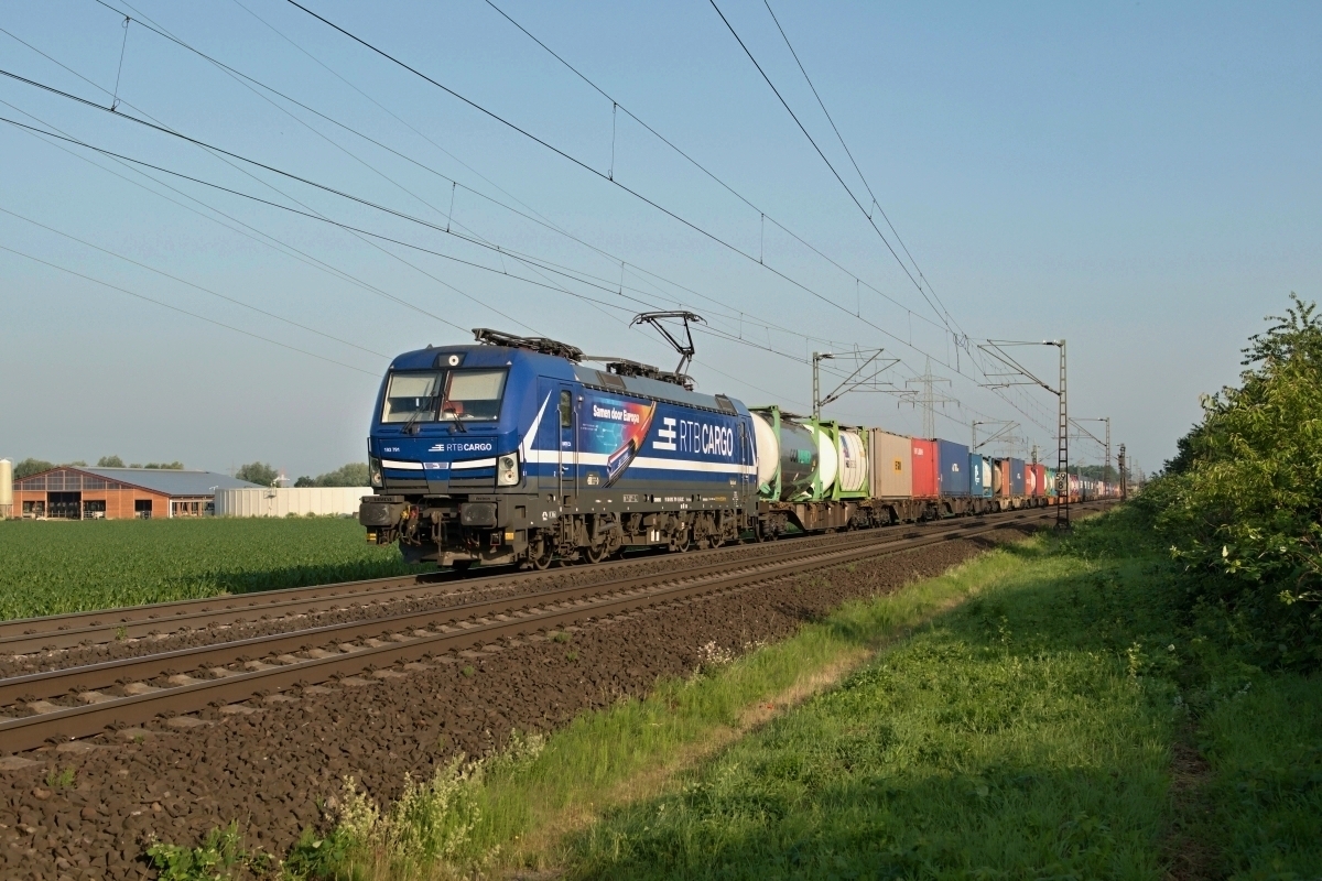 Dto. 193 791-1 am 18.06.2021 kurz nach Sonnenaufgang bei Bückeburg (HBKB)