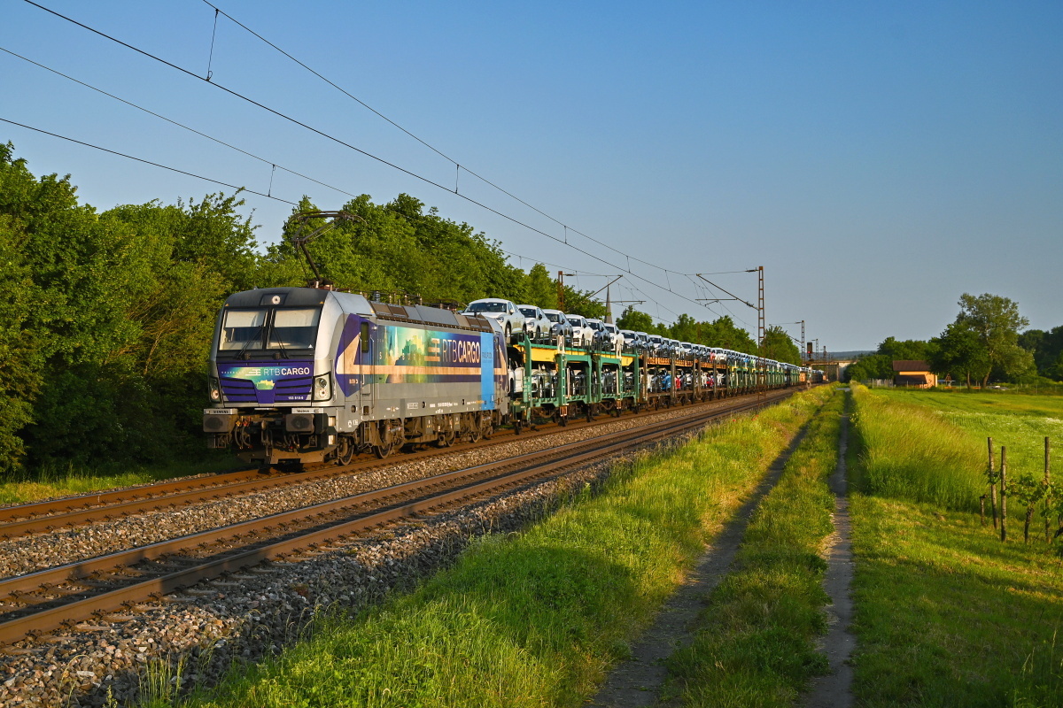 Dto. 193 810-9 am 26.05.2023 im Abendlicht bei Thüngersheim (NTHM) mit dem