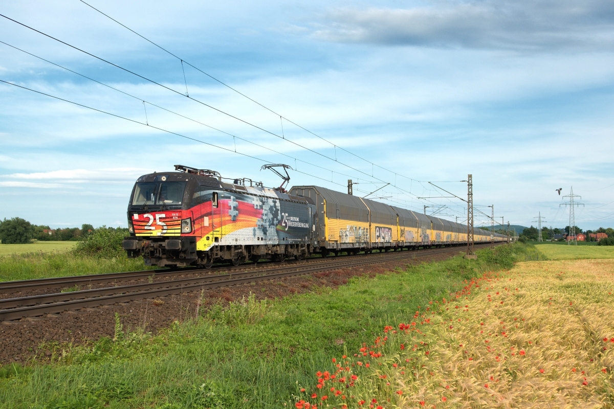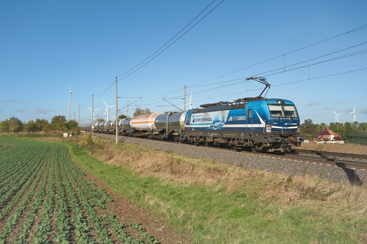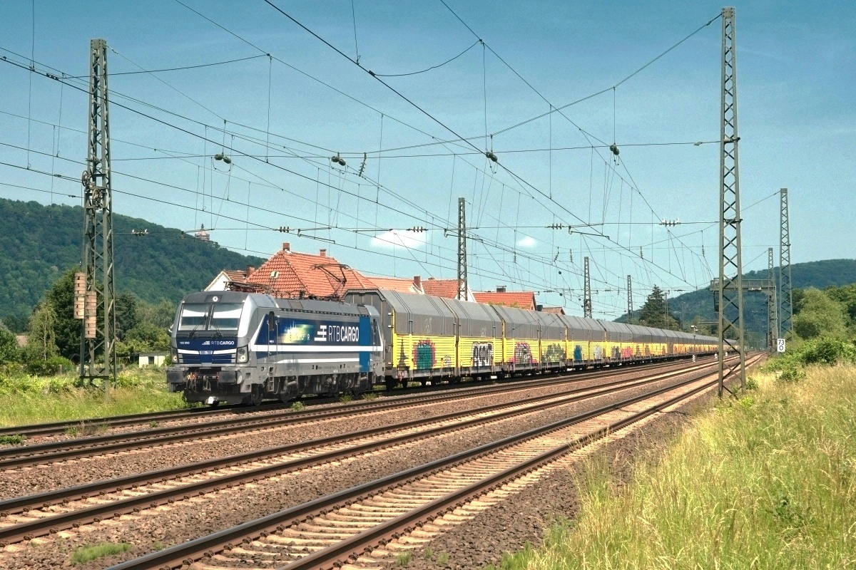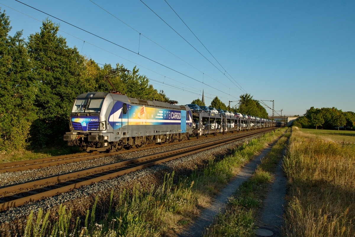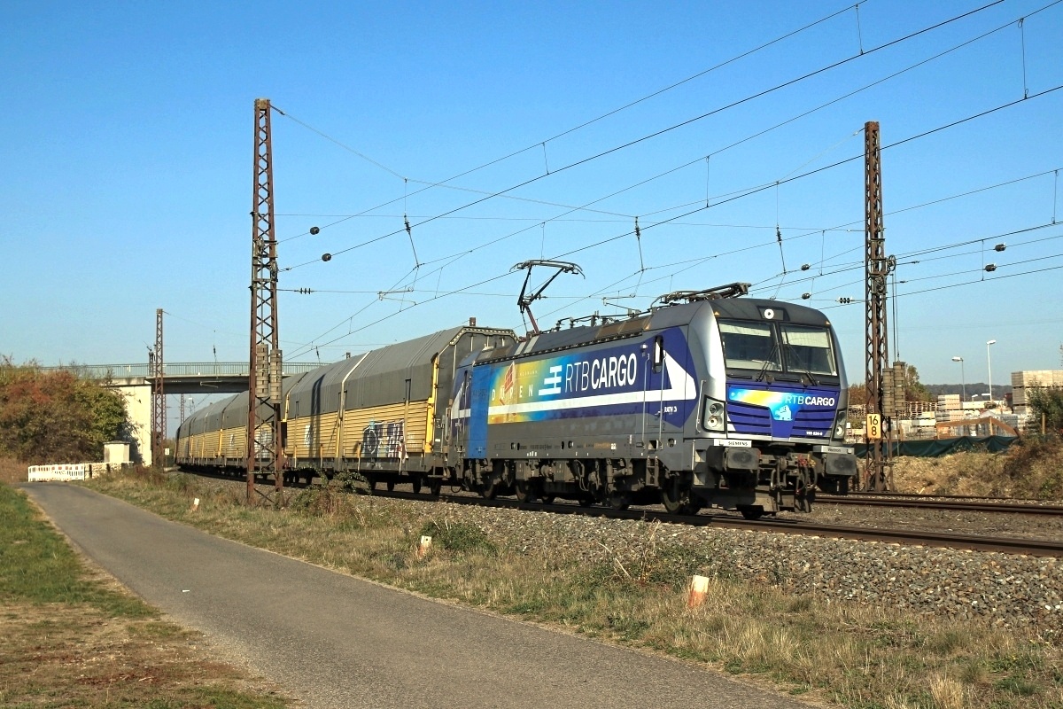 Dto. 193 824-0 im aktuellen Werbedesign. Die Lok passierte hier am 11.10.2018