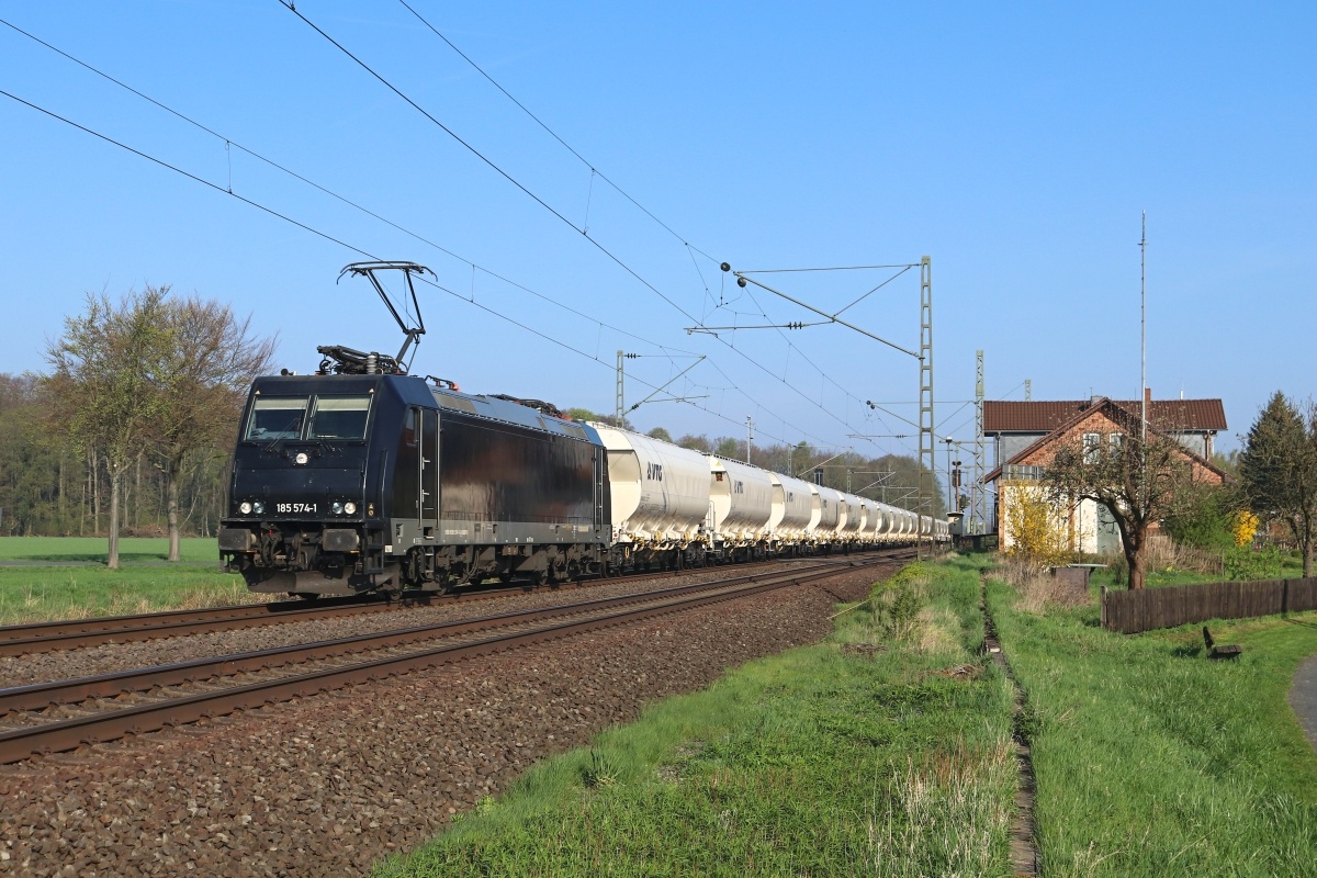 Dto. 185 574-1 am 19.04.2018. Hier passierte die Lok den ehemaligen